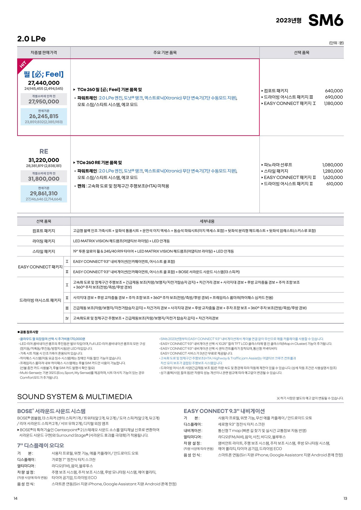 2022년 10월 SM6 신차가격표 (2023년형 SM6 출시)