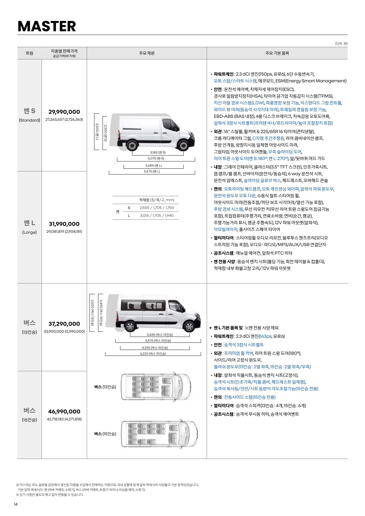 2021년 8월 마스터 신차가격표