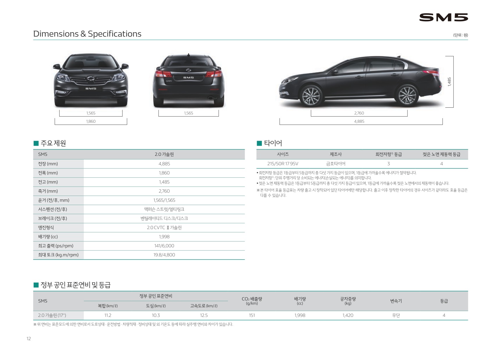 2019년 4월 SM5 신차가격표