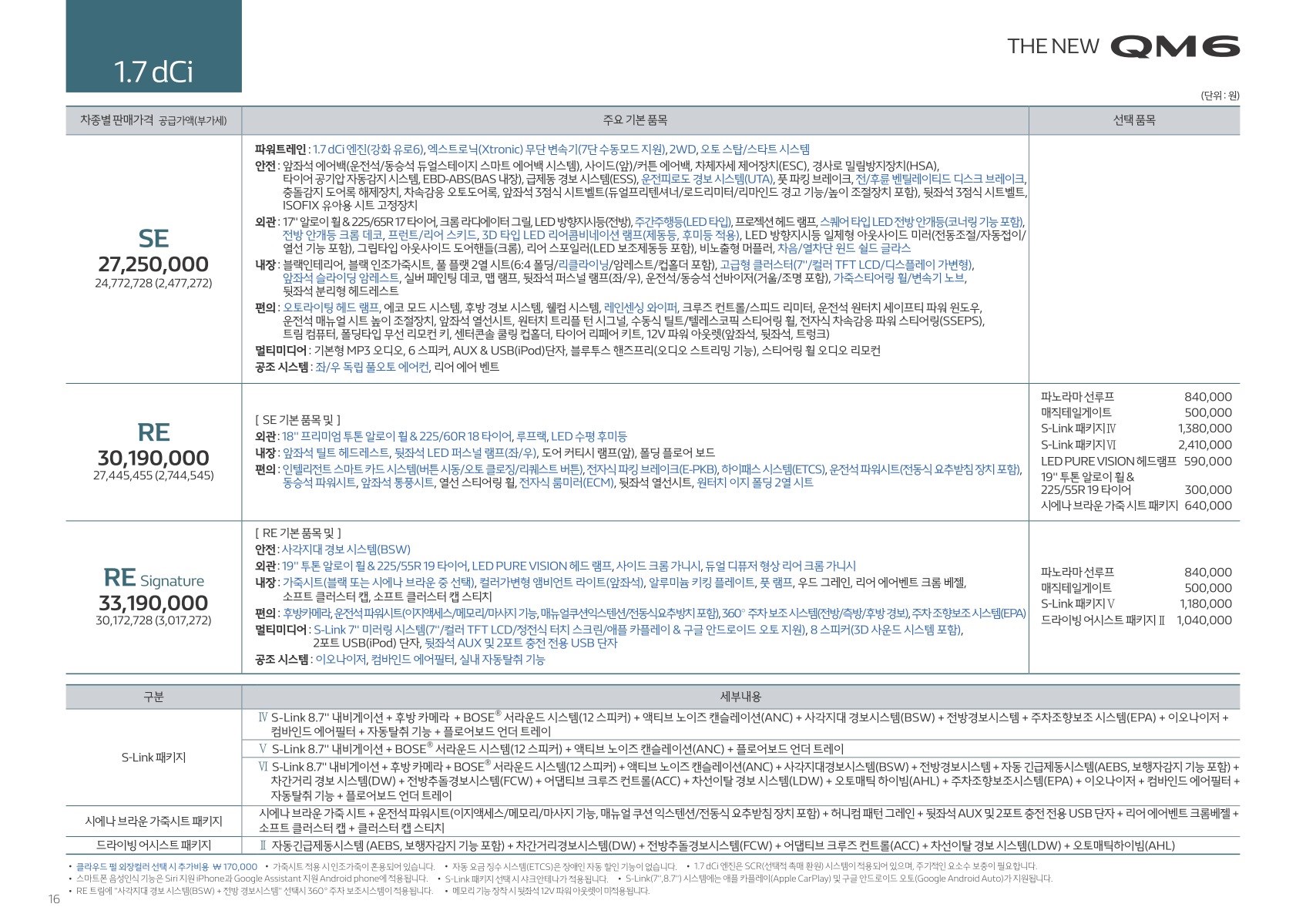 QM6 1.7 DCi 디젤 출시 신차가격표