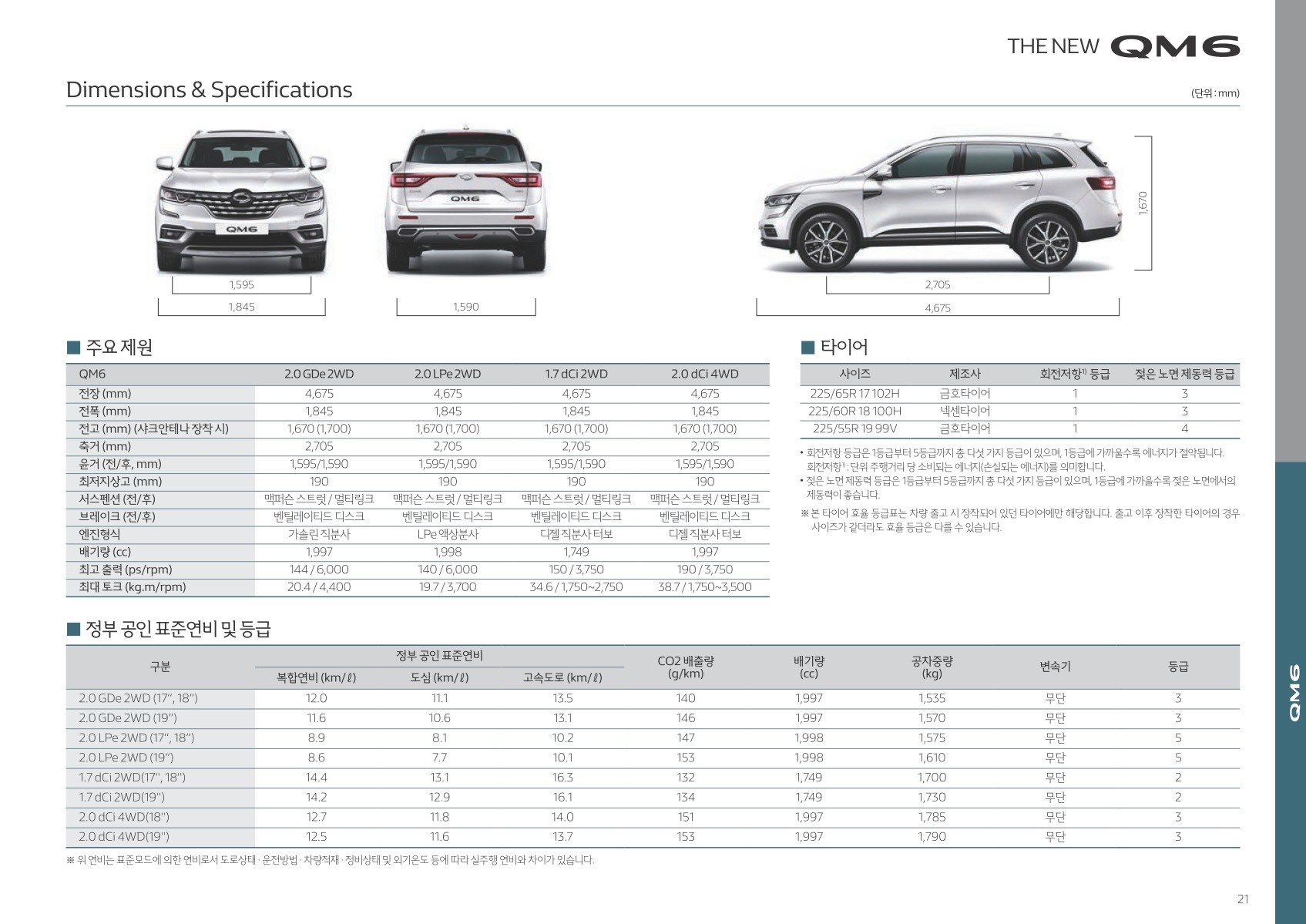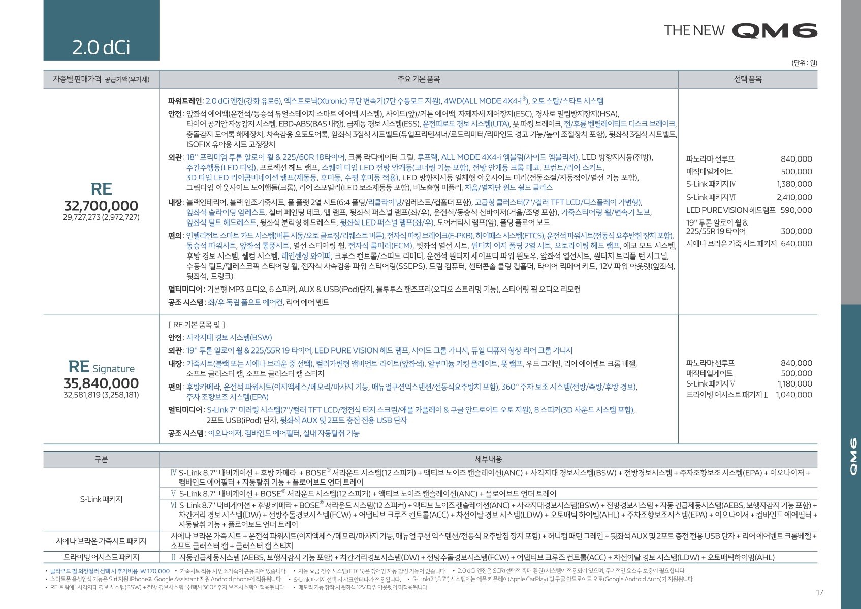 2019년 9월 QM6 신차가격표 (QM6 1.7 디젤 출시)