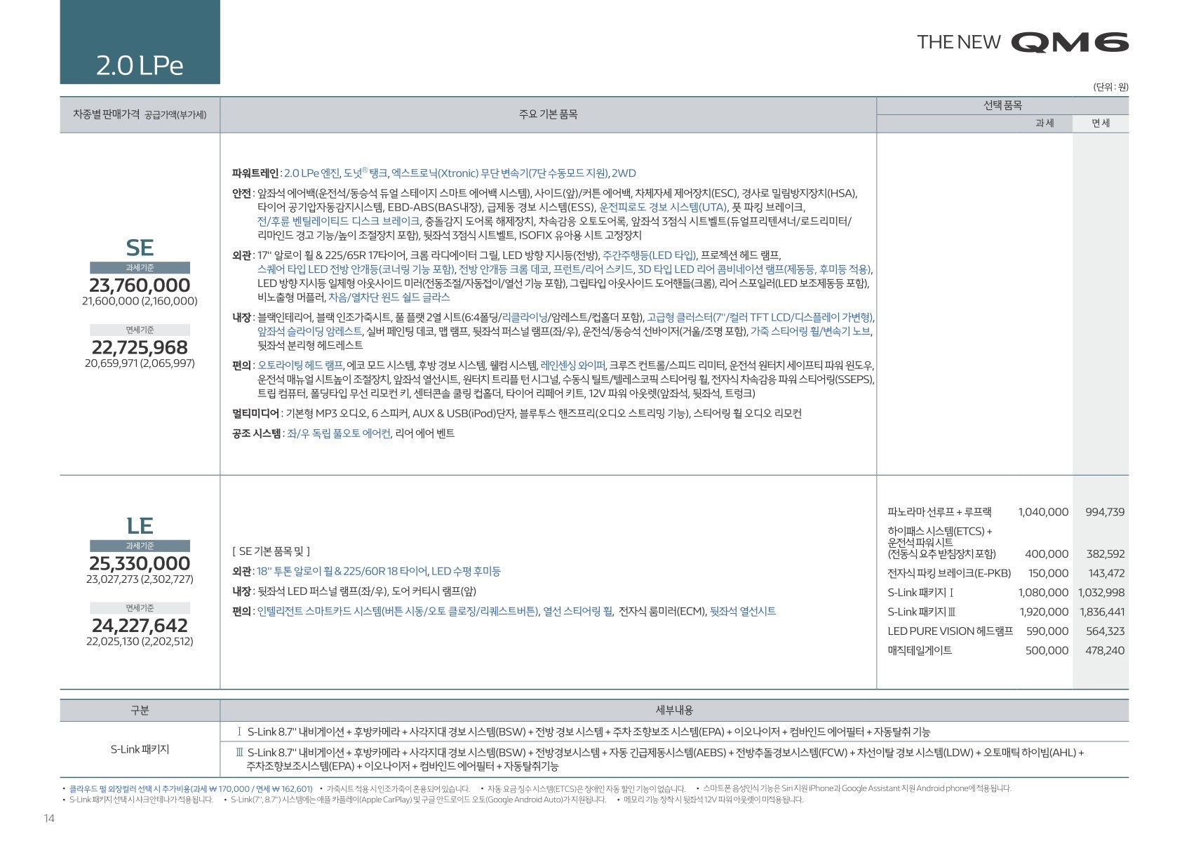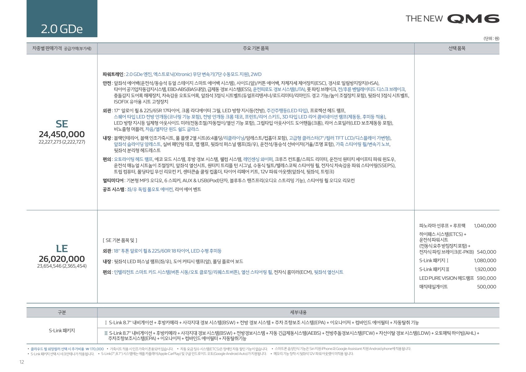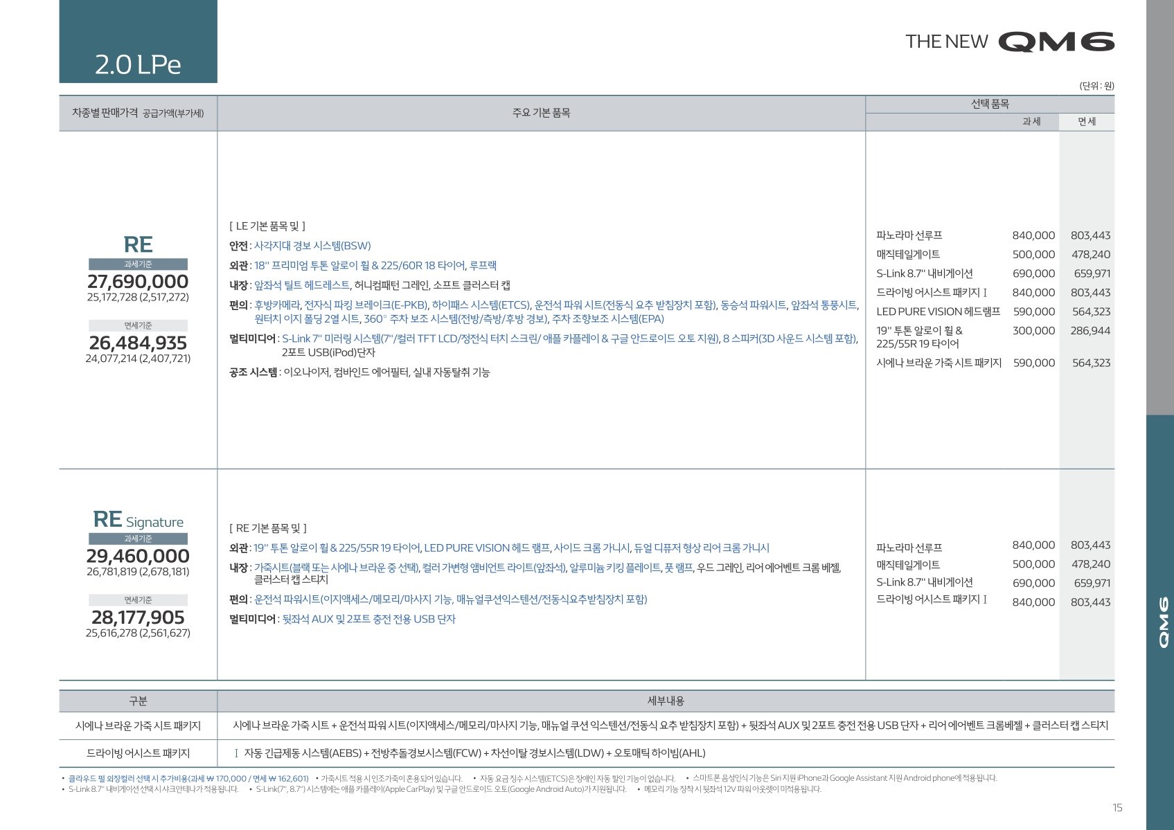 2019년 7월 SM6 가격표 (2020년형 SM6 신차가격표)