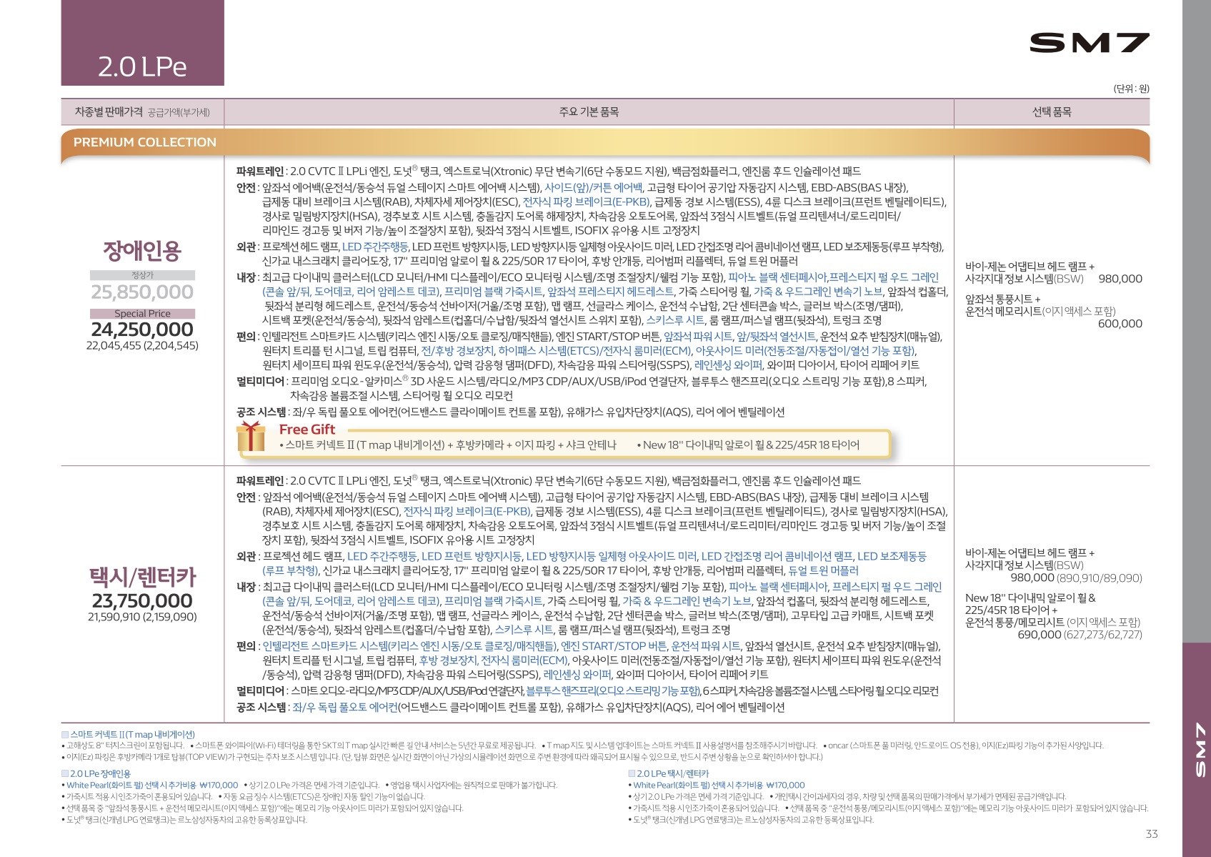 2019년 4월 SM7 신차가격표