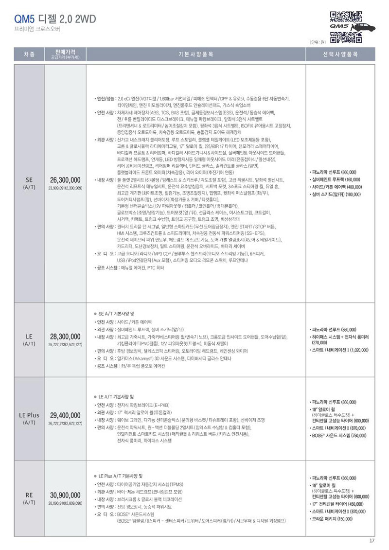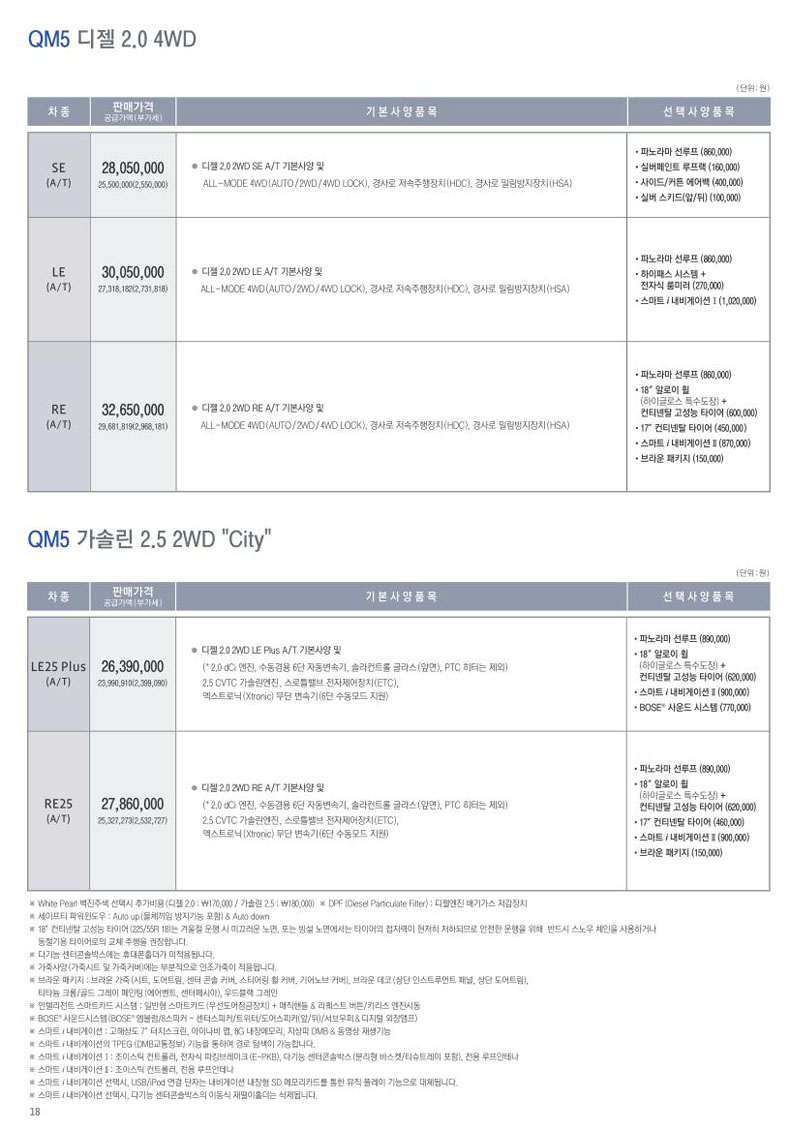 2012년 3월 QM5 신차가격표
