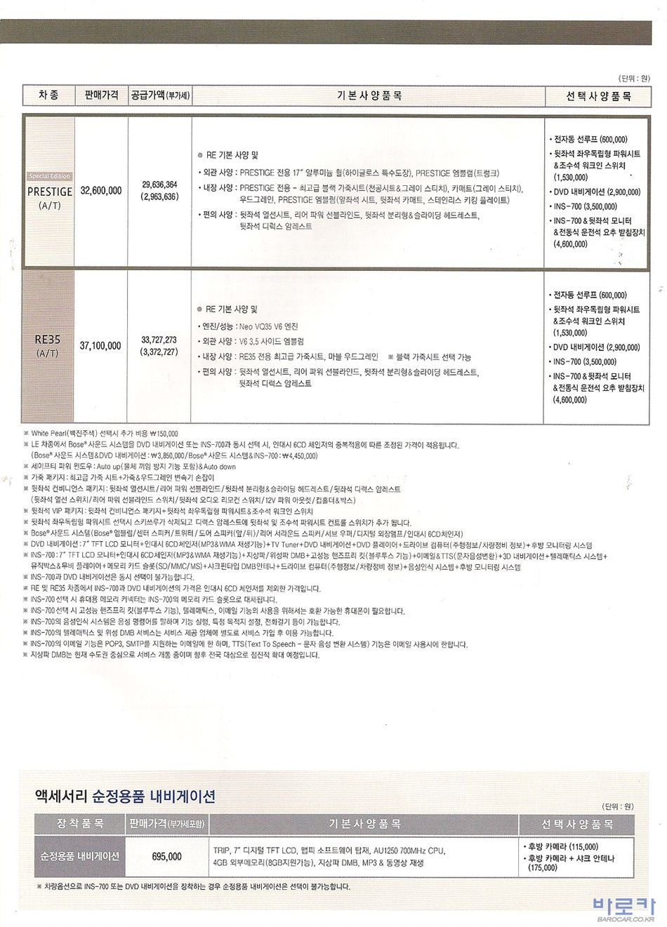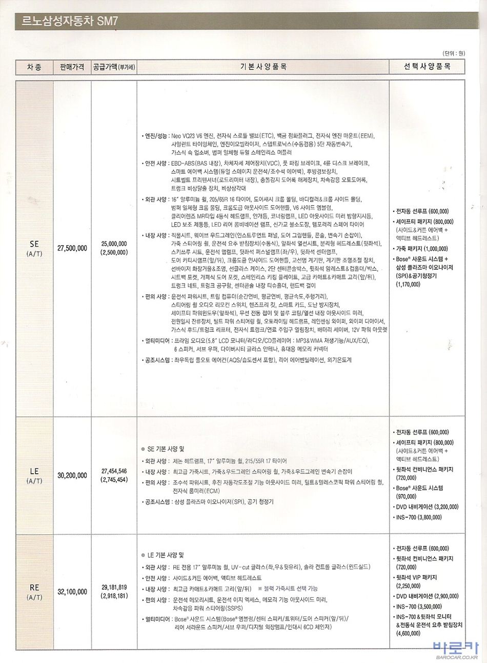 2009년 4월 SM7 신차가격표