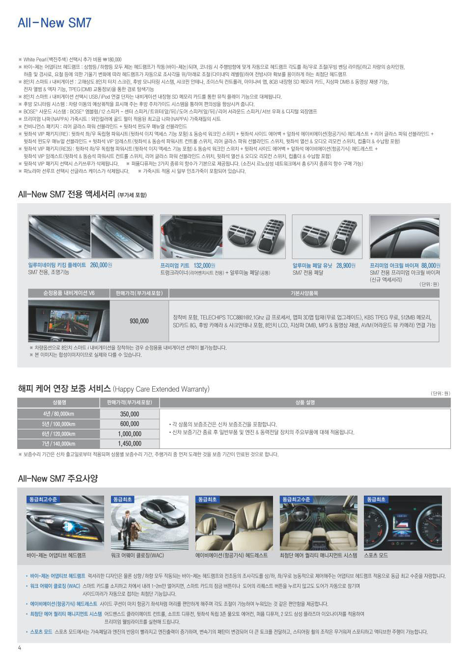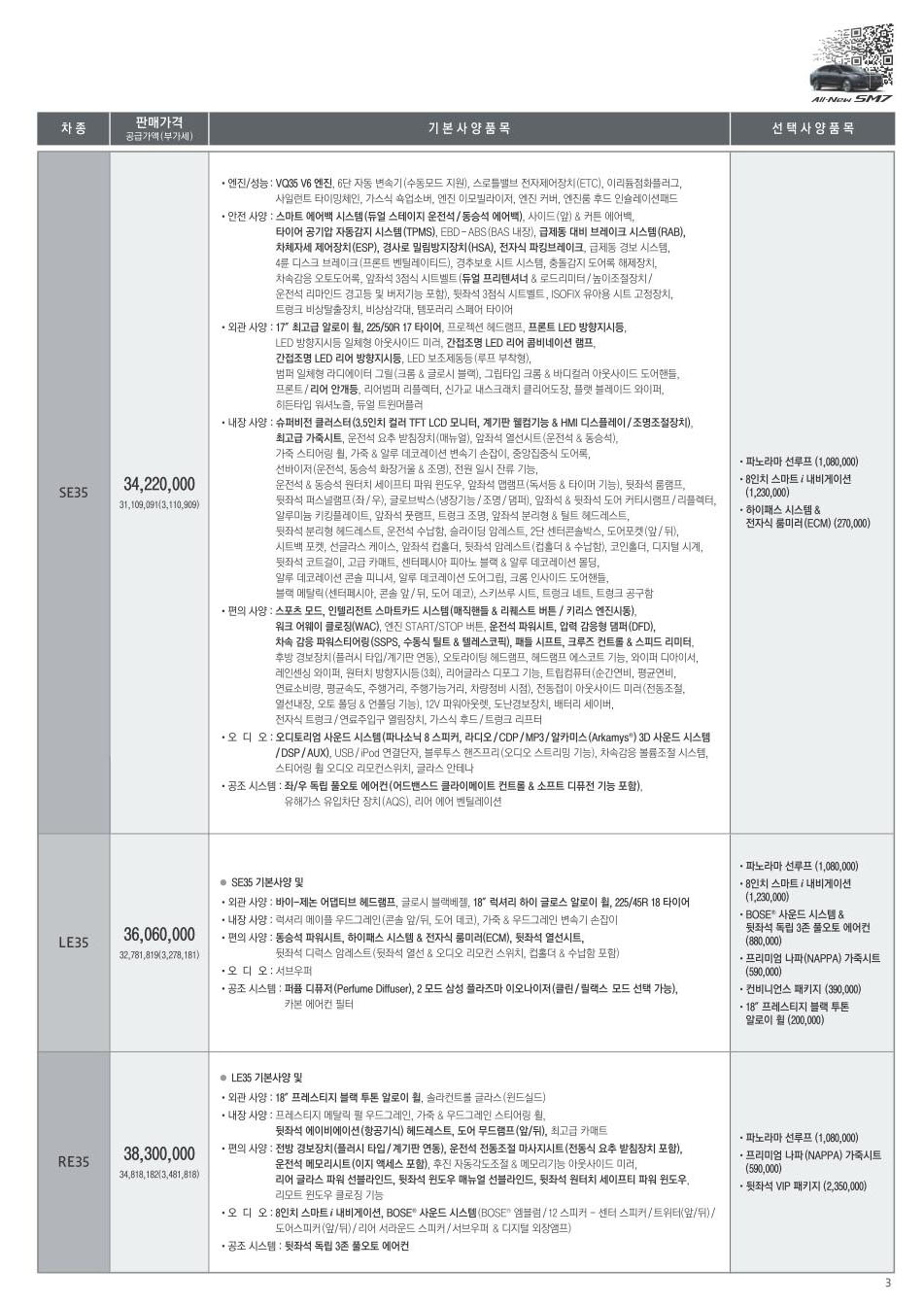 2012년 3월 SM7 신차가격표