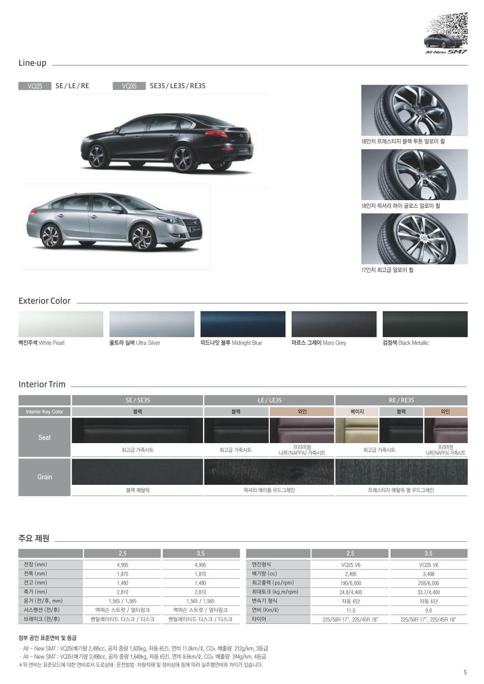 2012년 11월 SM7 신차가격표