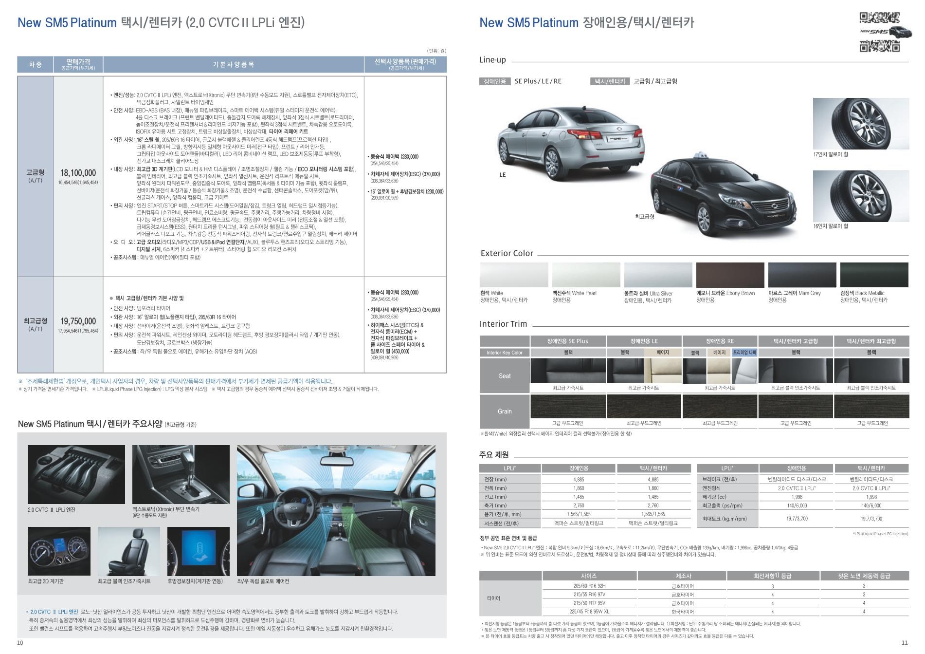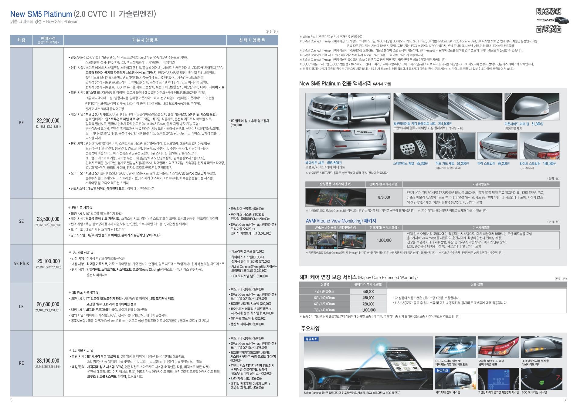 2012년 11월 SM5 (플래티넘) 신차가격표