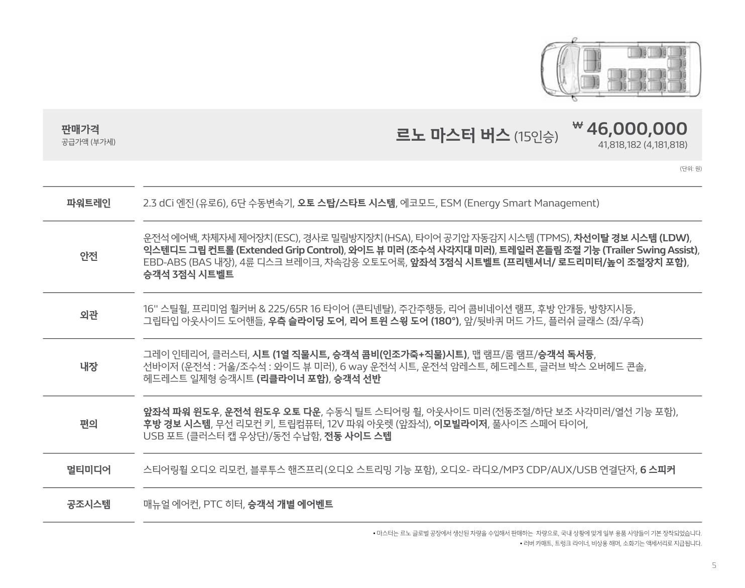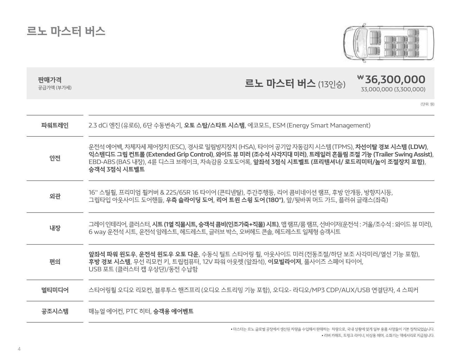 2019년 9월 르노마스터밴 & 마스터버스 신차가격표