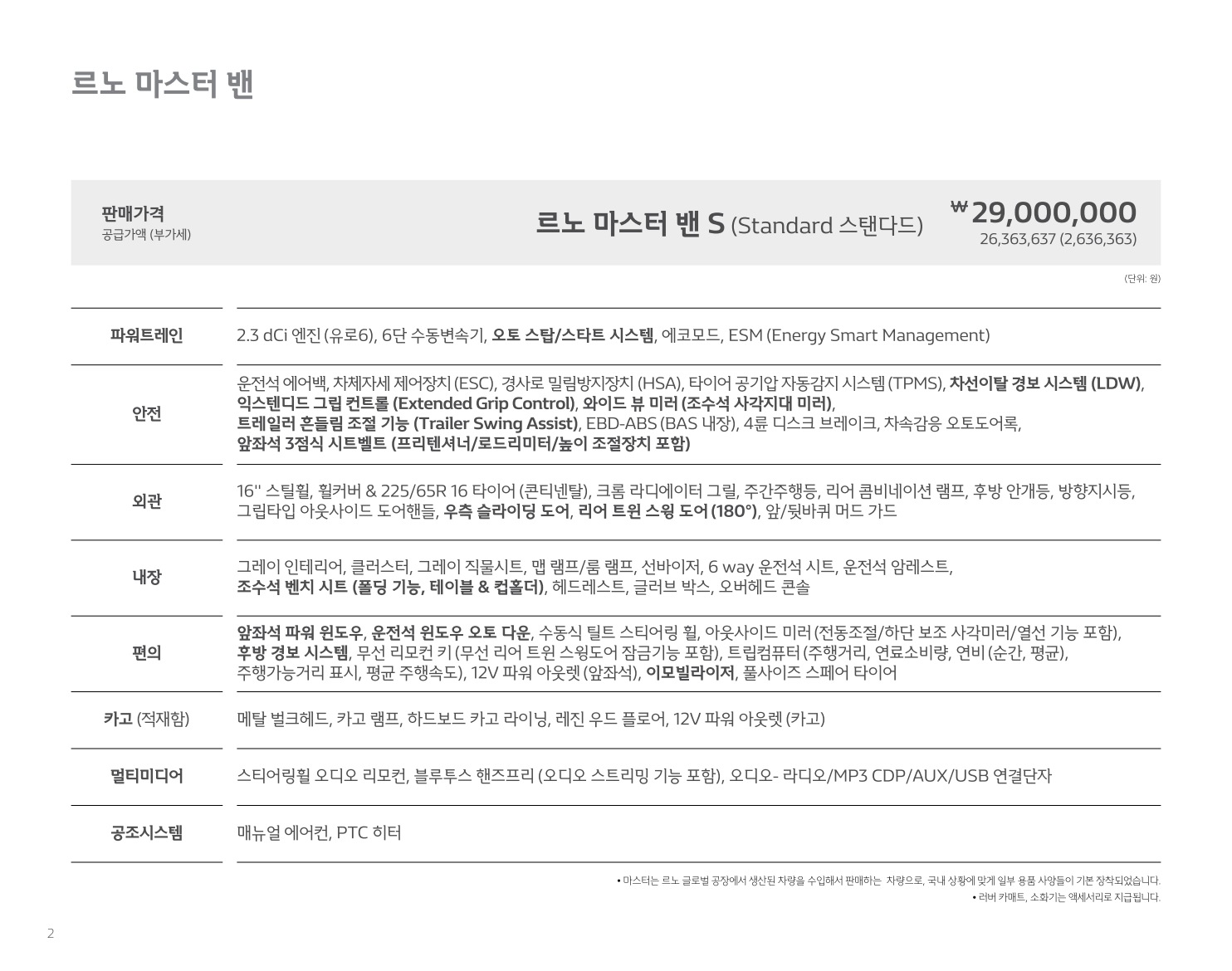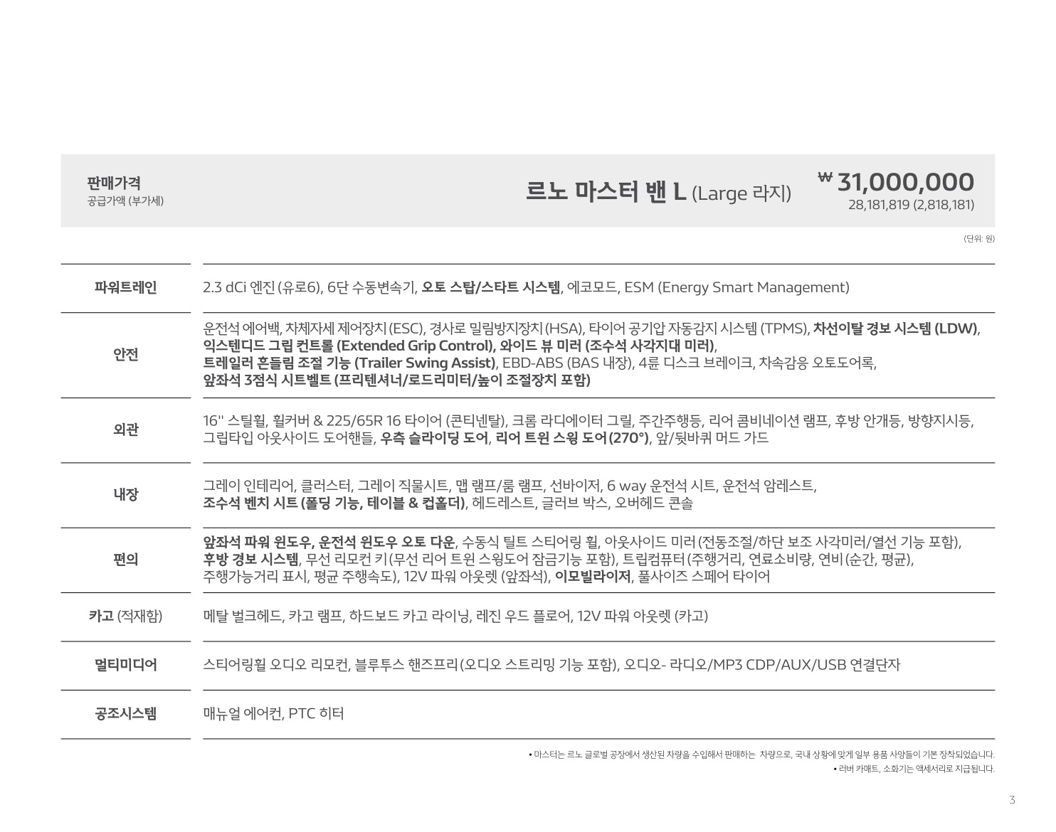2020년 3월 르노 마스터 가격표