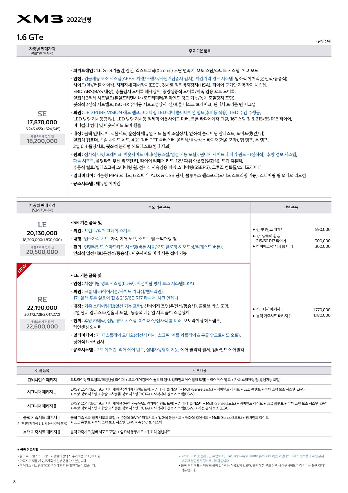 2022년 3월 XM3 신차가격표 (2023년형 XM3 출시)