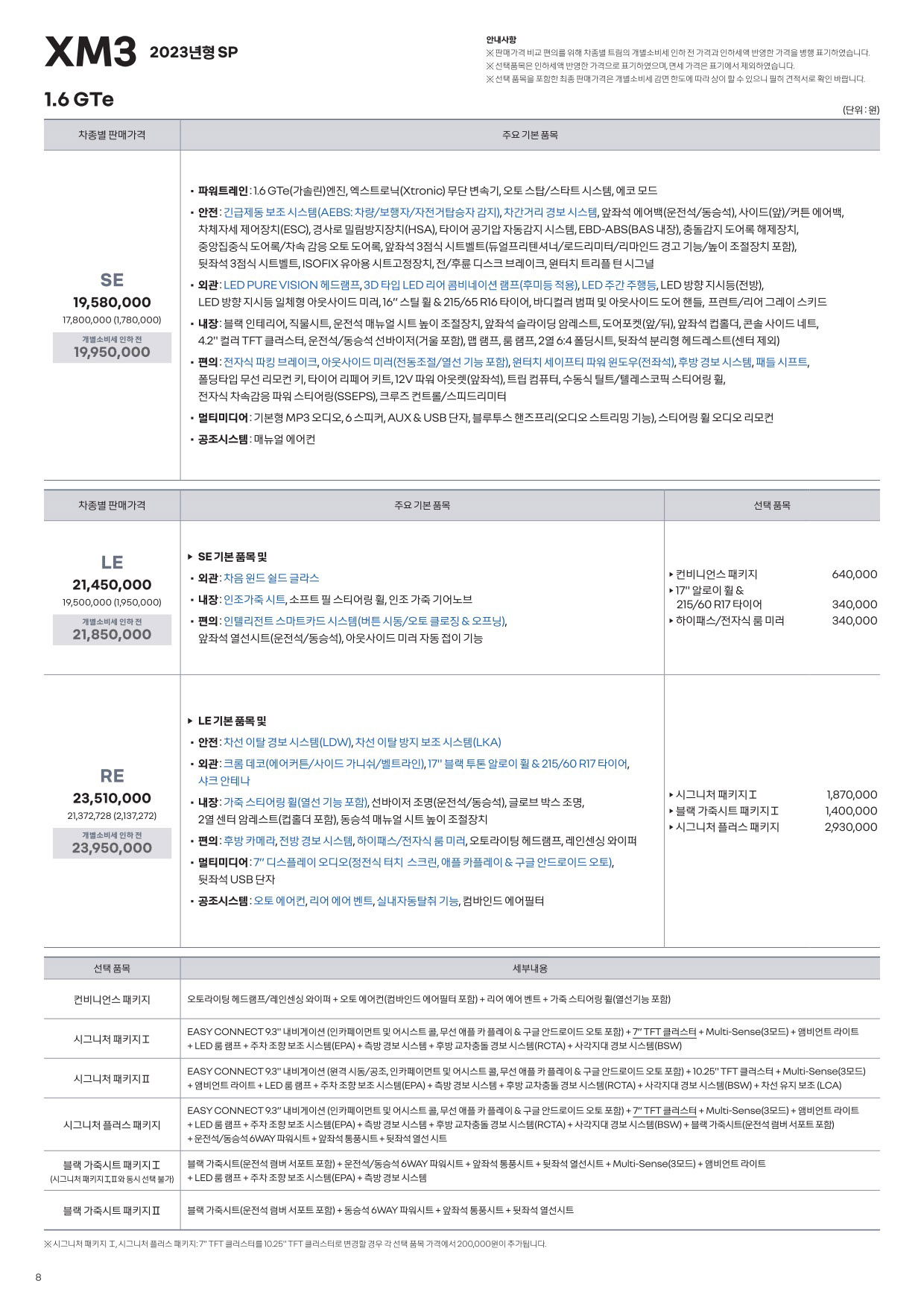 2022년 3월 XM3 신차가격표 (2023년형 XM3 출시)