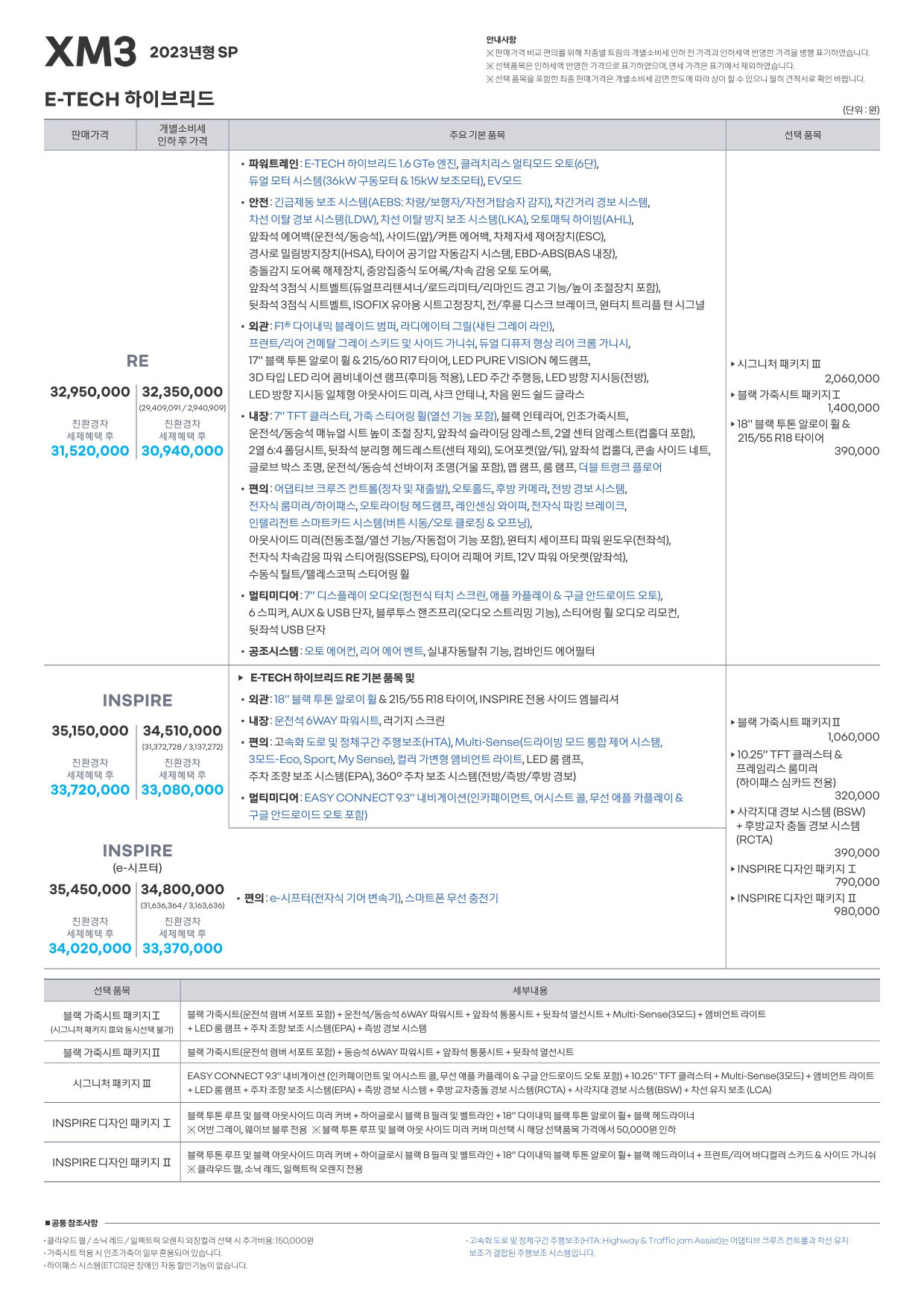 2022년 10월 XM3 신차가격표 (XM3 하이브리드 출시)