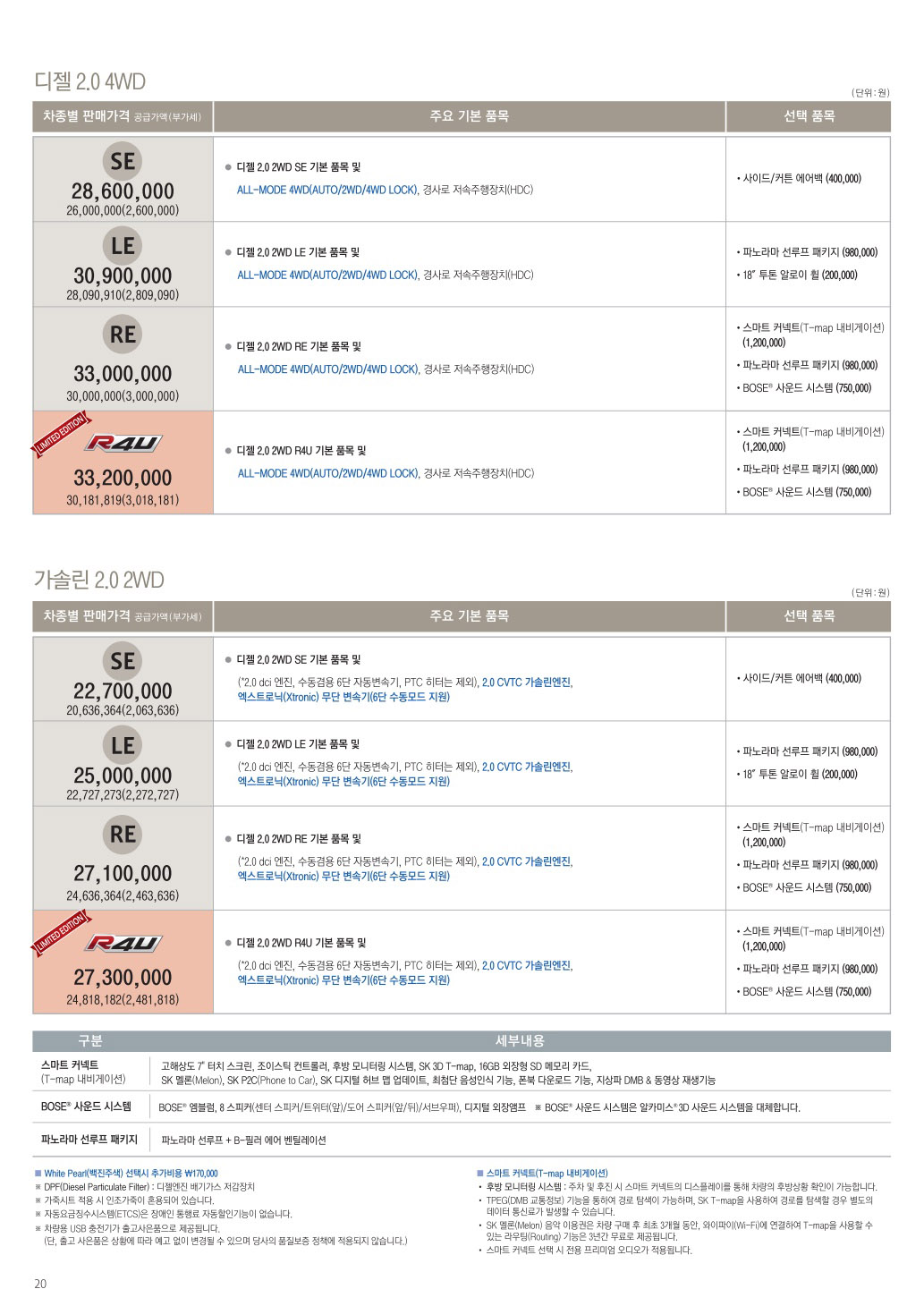 ※ 본 가격표의 모든 저작권은 해당 차량 제조사에 있습니다.