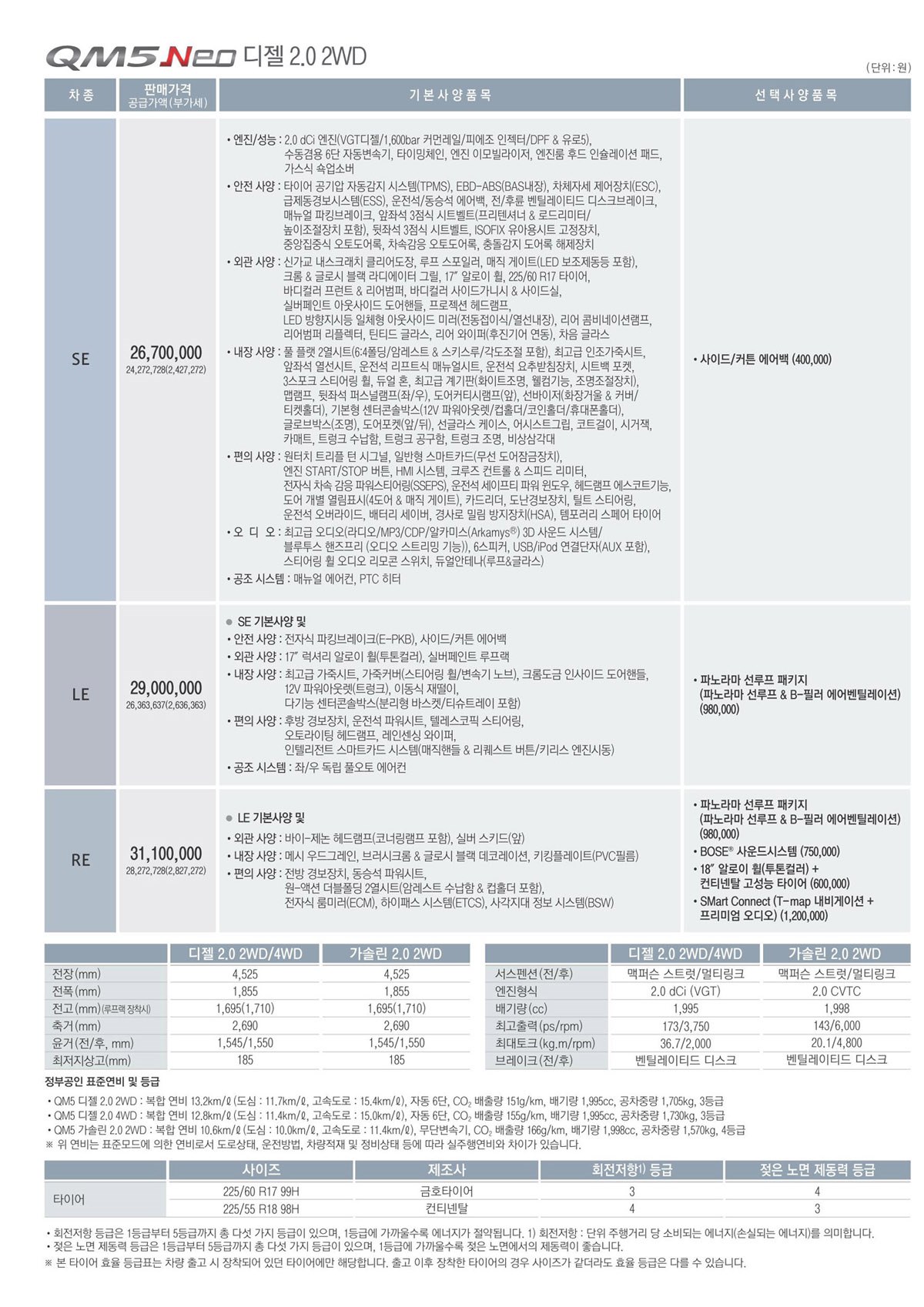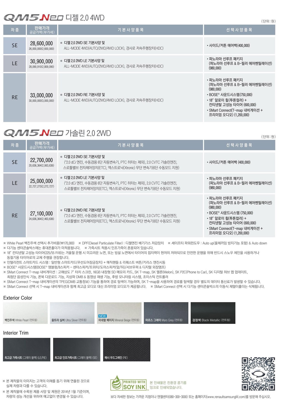 2014년 1월 QM5 (네오) 신차가격표