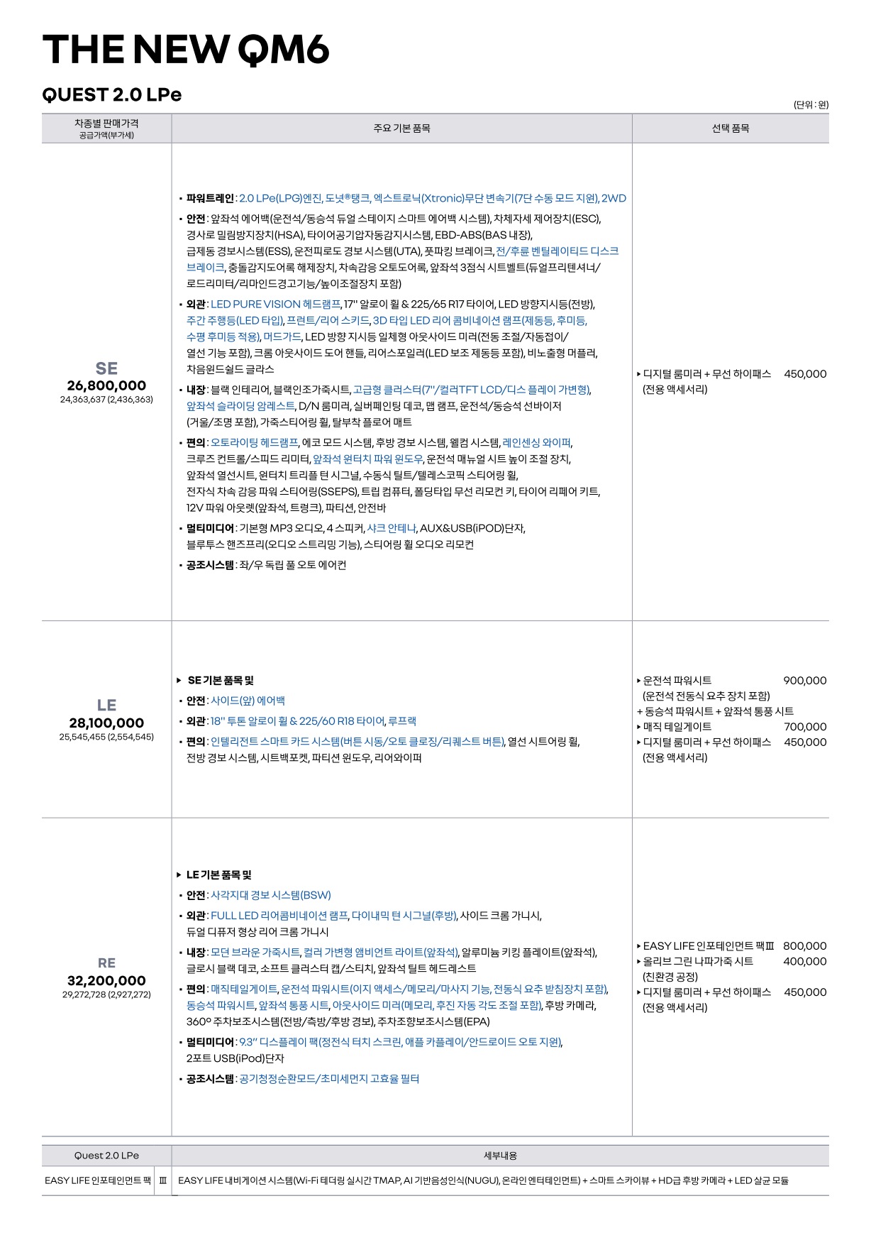 2023년 3월 QM6 신차가격표 (더 뉴 QM6 출시 , 퀘스트 모델 추가)