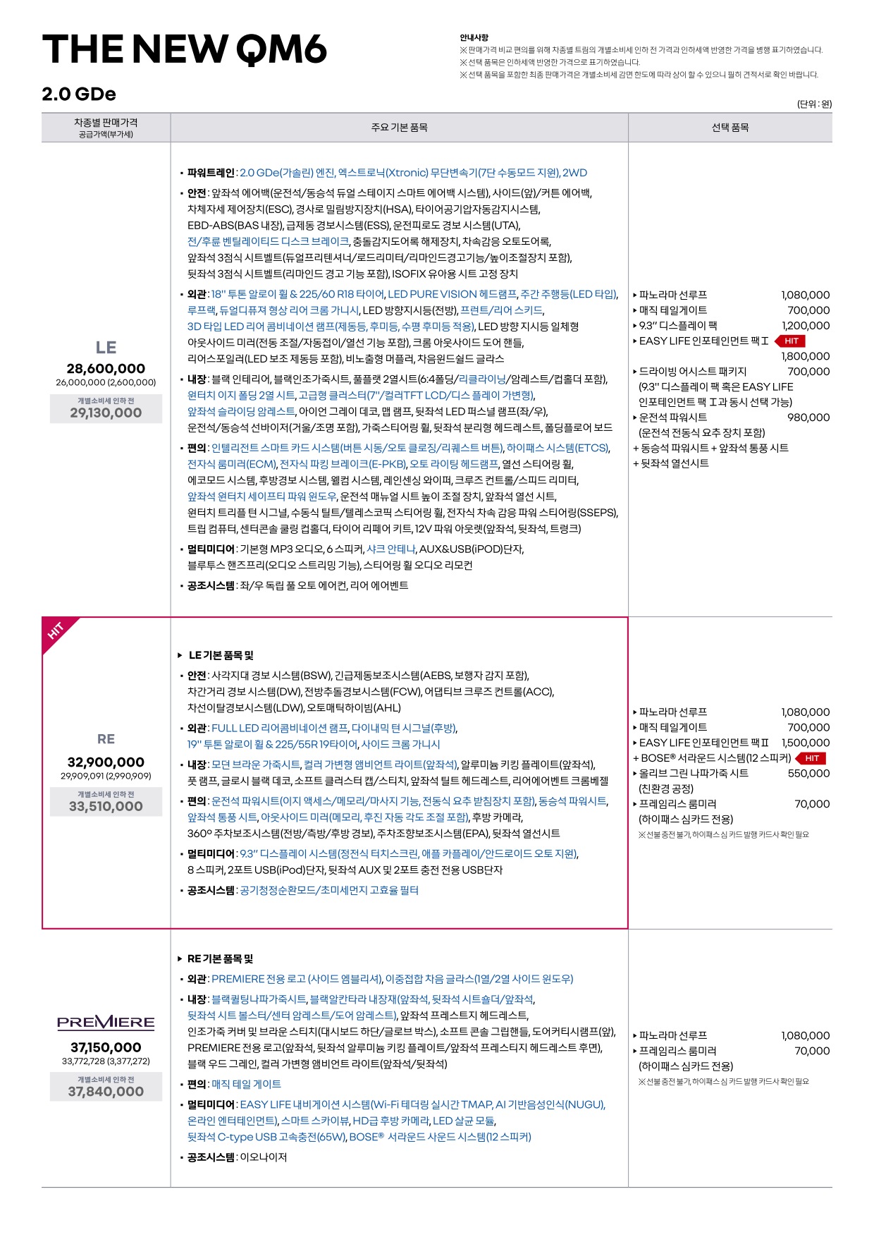 2022년 6월 QM6 신차가격표 (2023년형 QM6)