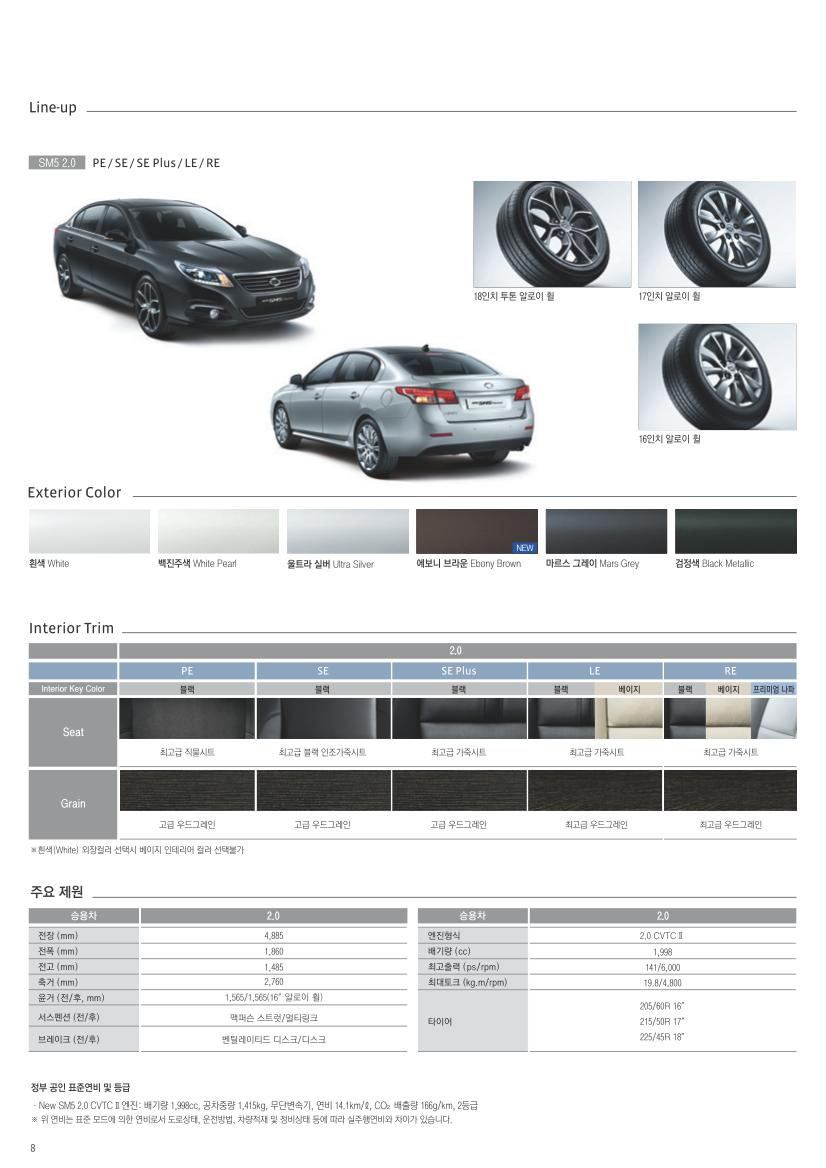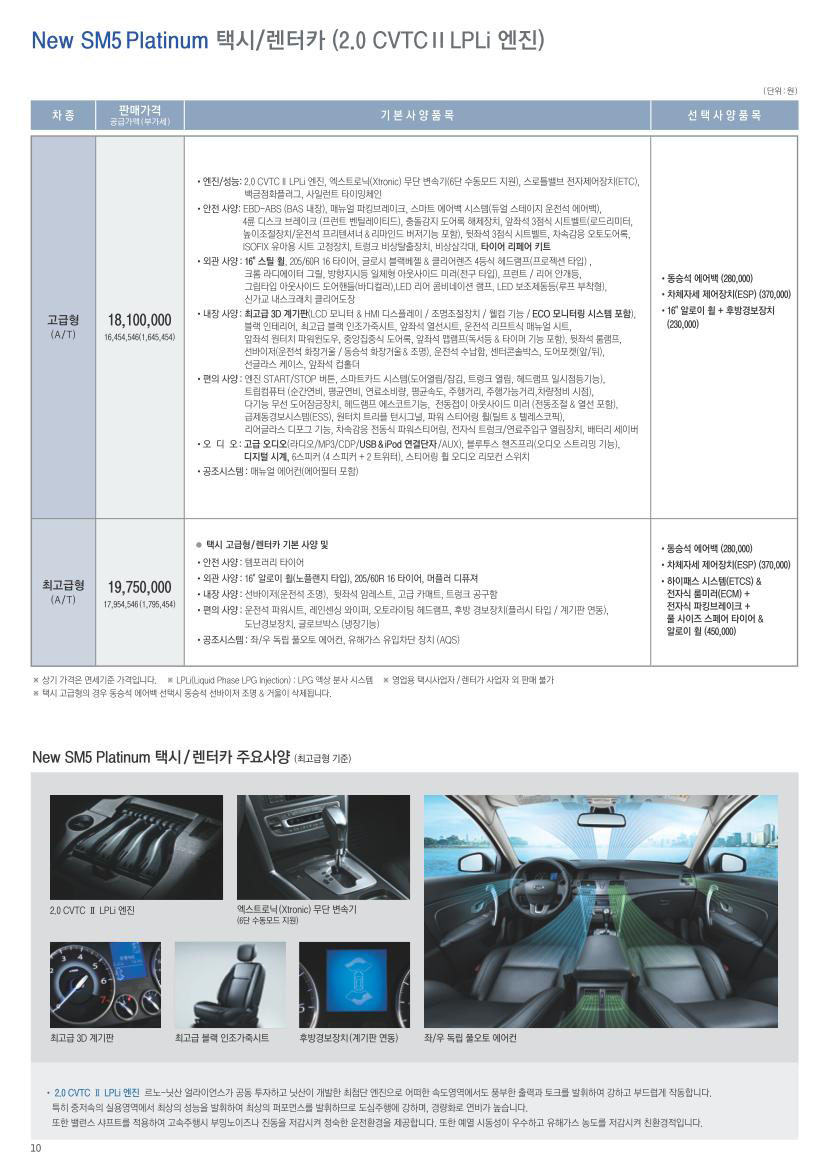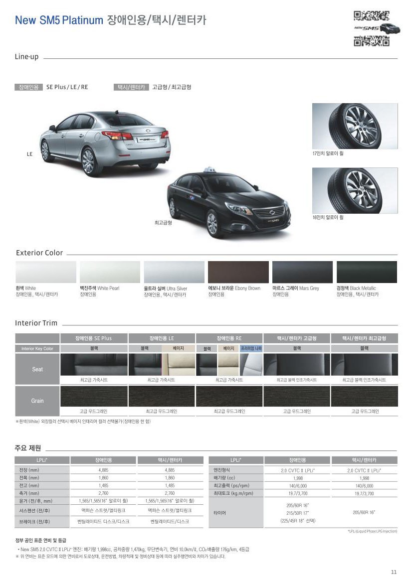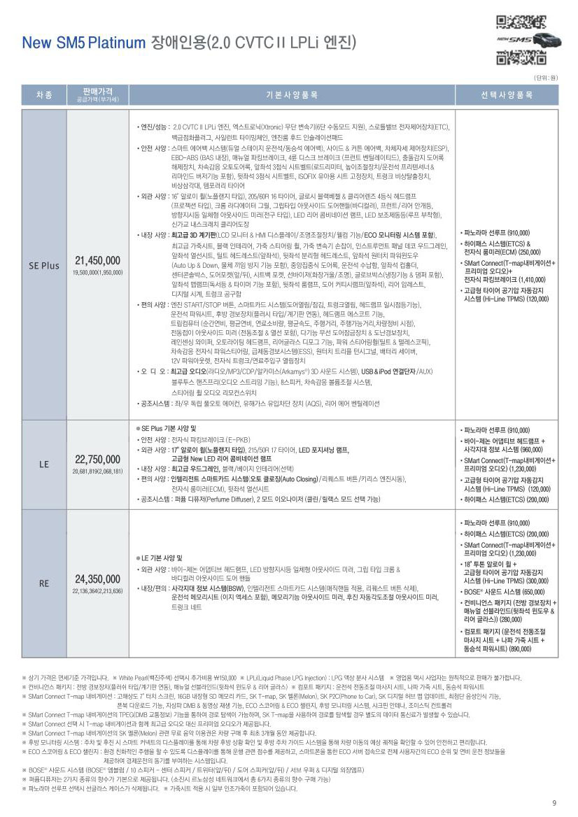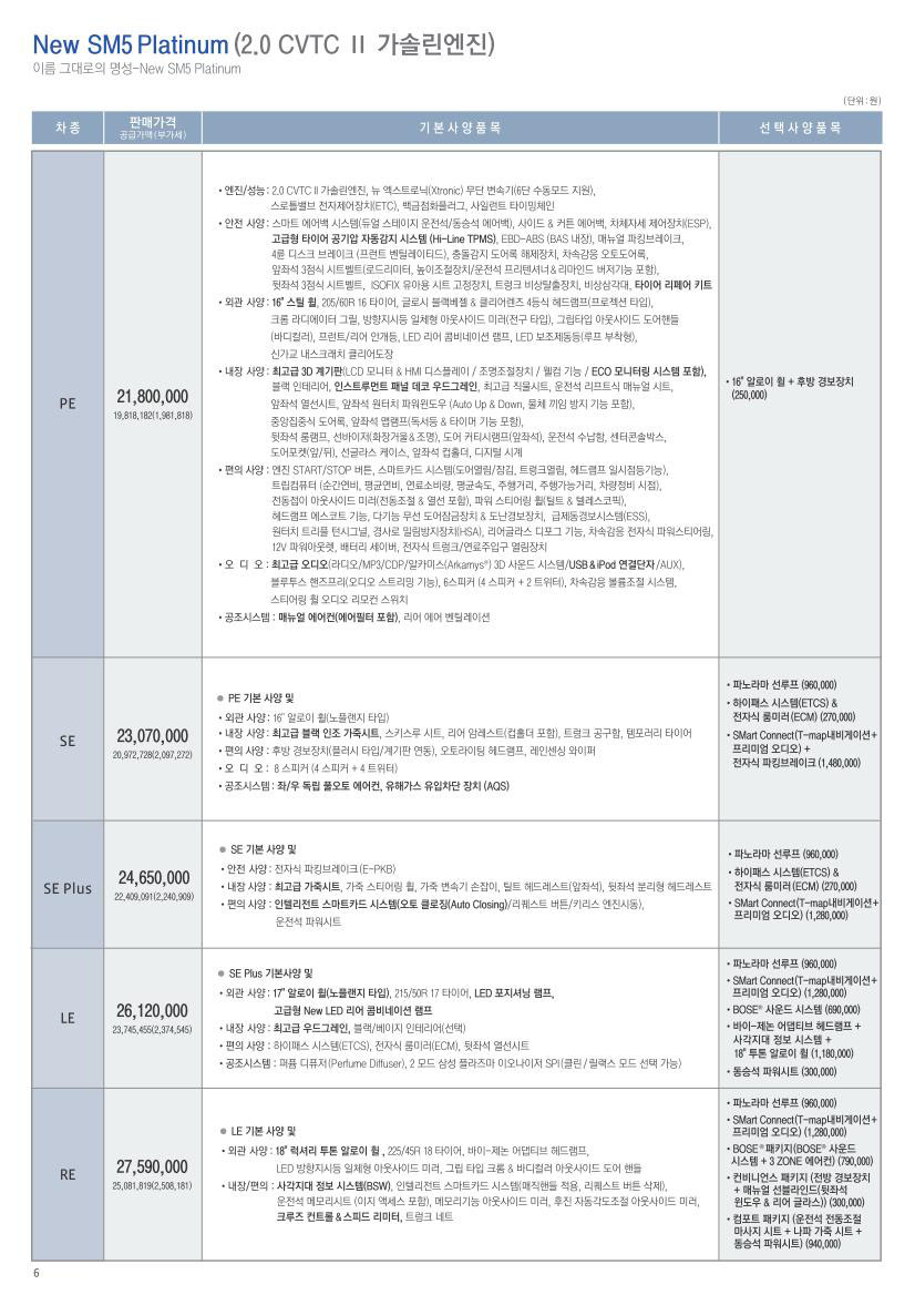 2012년 11월 SM5 (플래티넘) 신차가격표