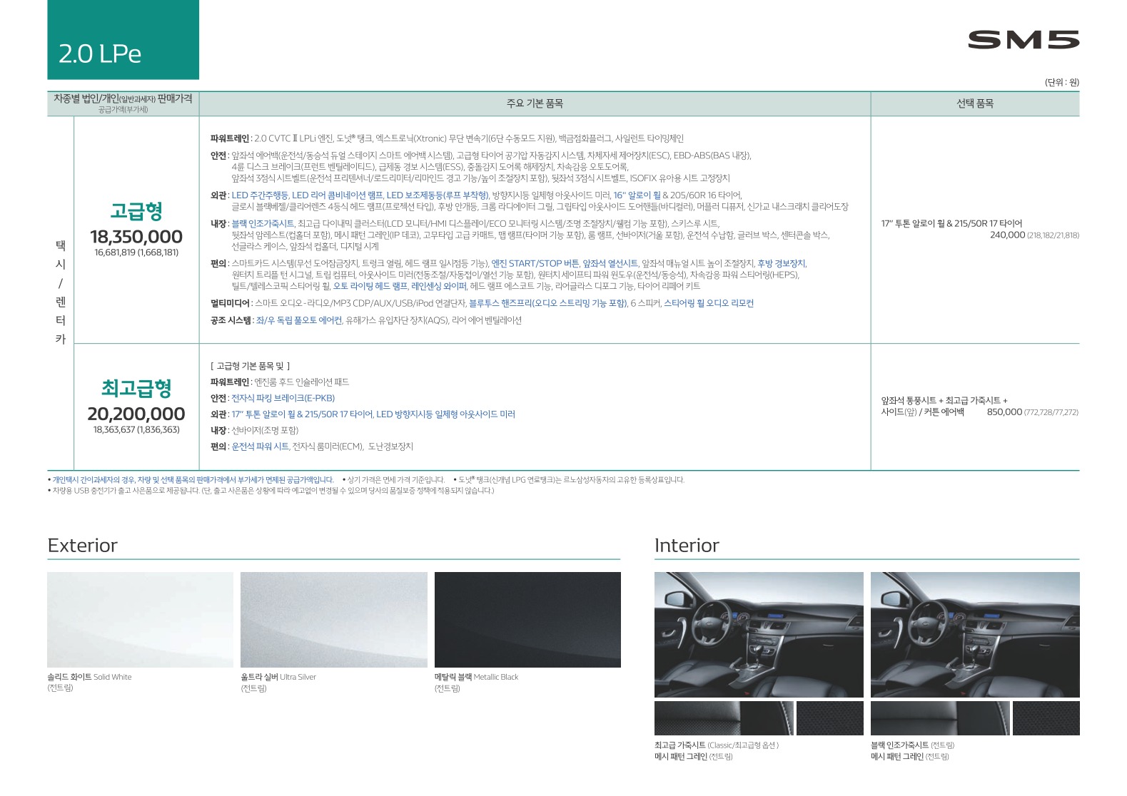 2018년 3월 SM5 신차가격표