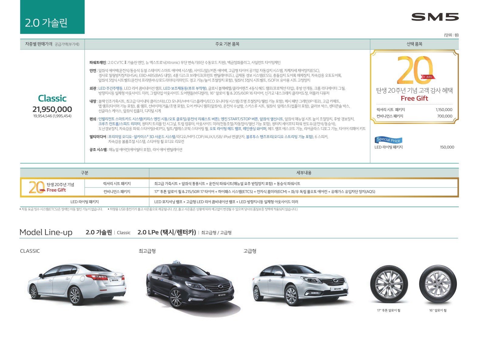 2017년 9월 SM5 신차가격표