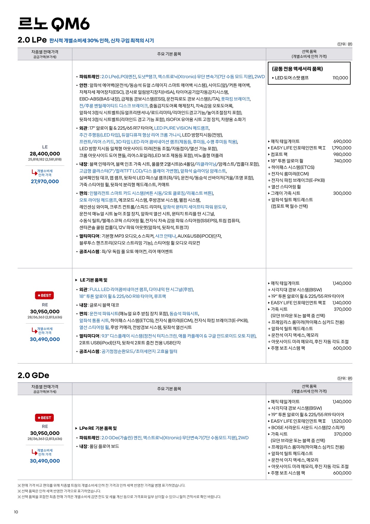 2025년 4월 QM6 신차가격표 (2026년형 QM6)