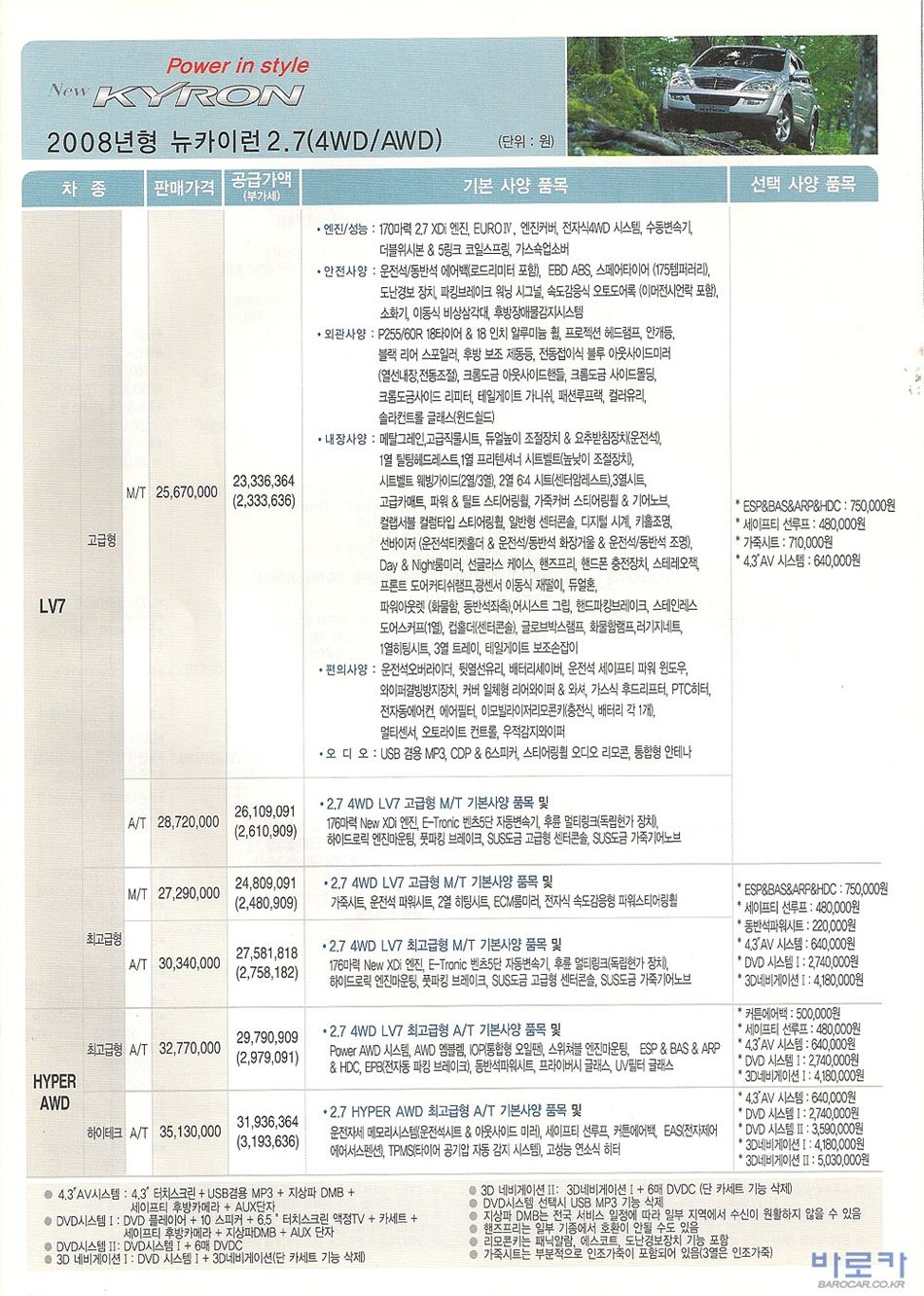 2007년 9월 카이런 신차가격표