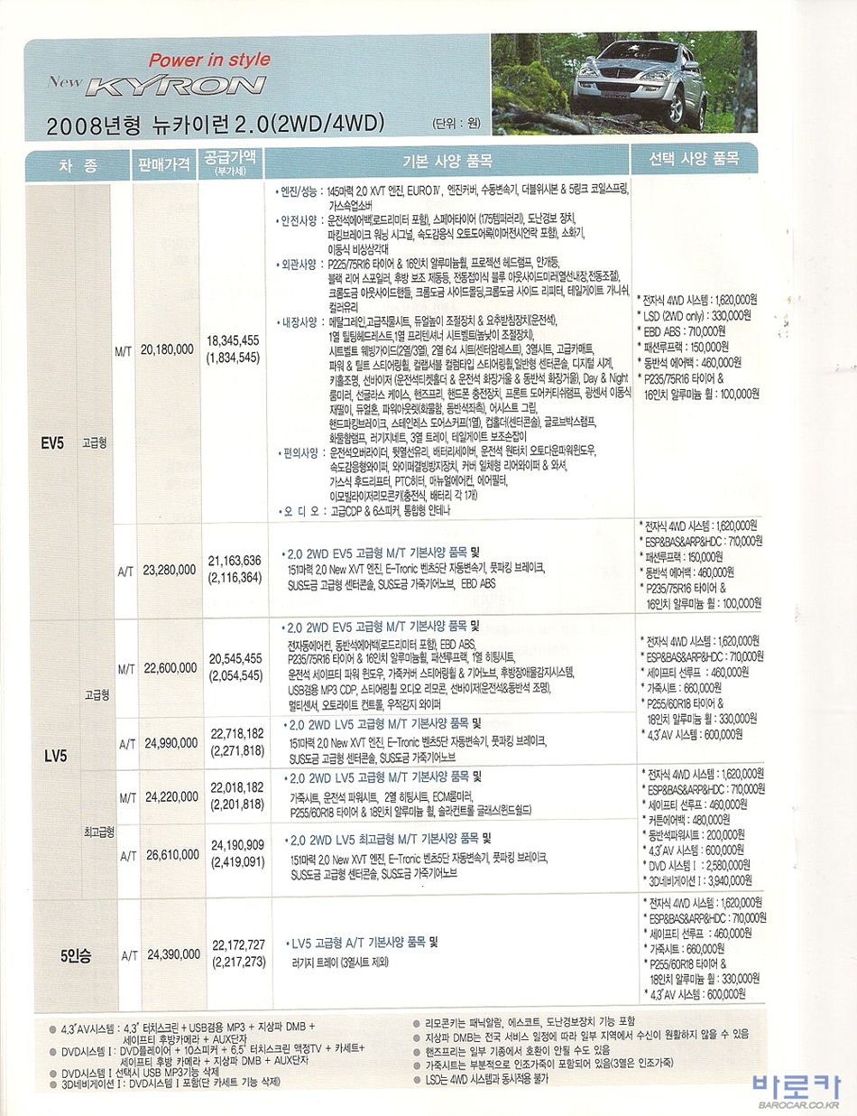 2008년 2월 카이런 (뉴카이런) 신차가격표
