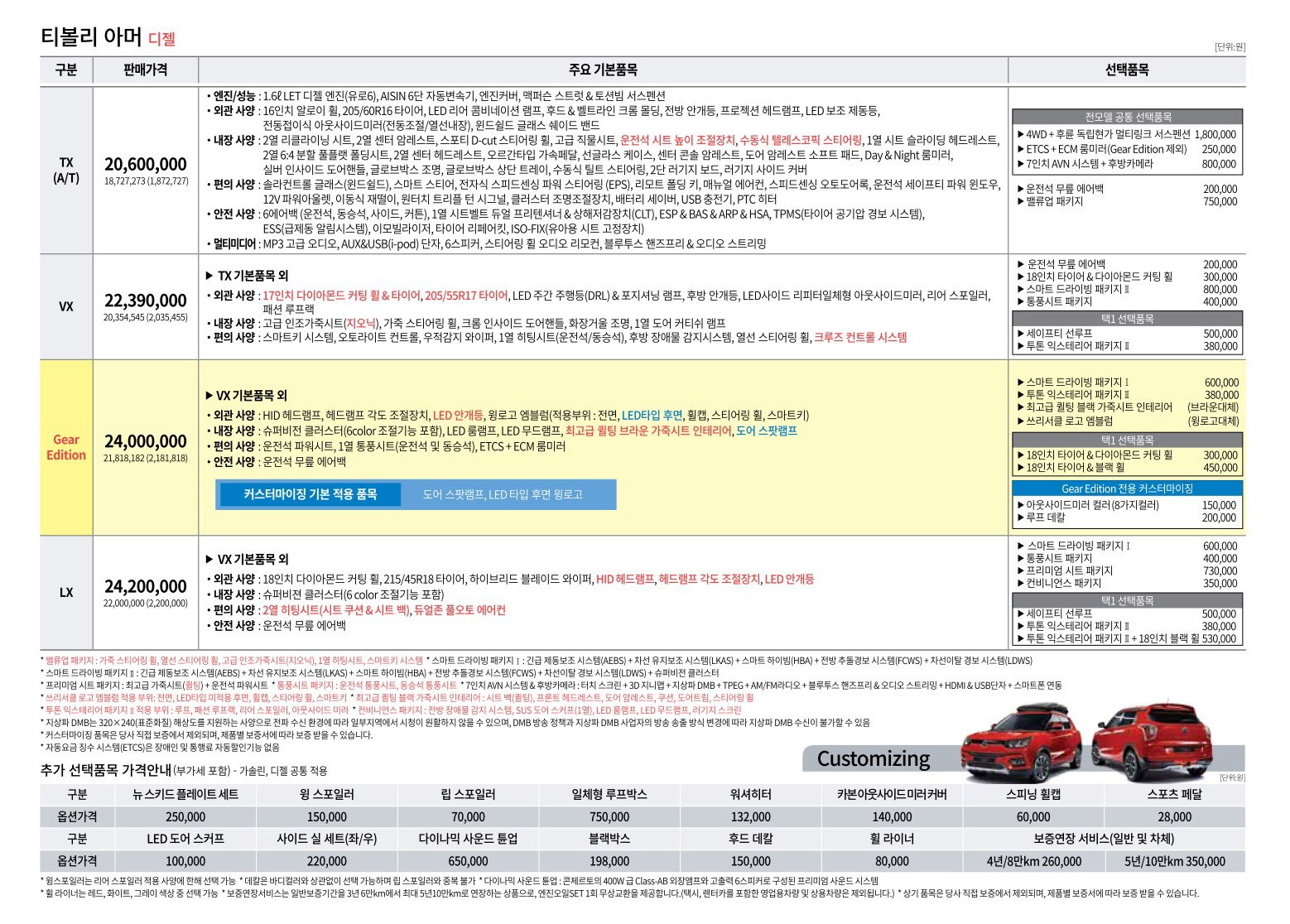 2017년 7월 티볼리 신차가격표
