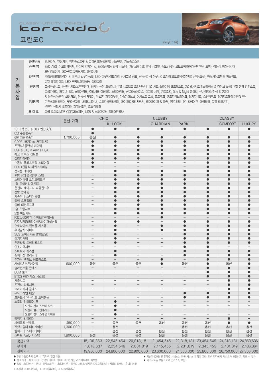 2011년 2월 코란도C 신차가격표