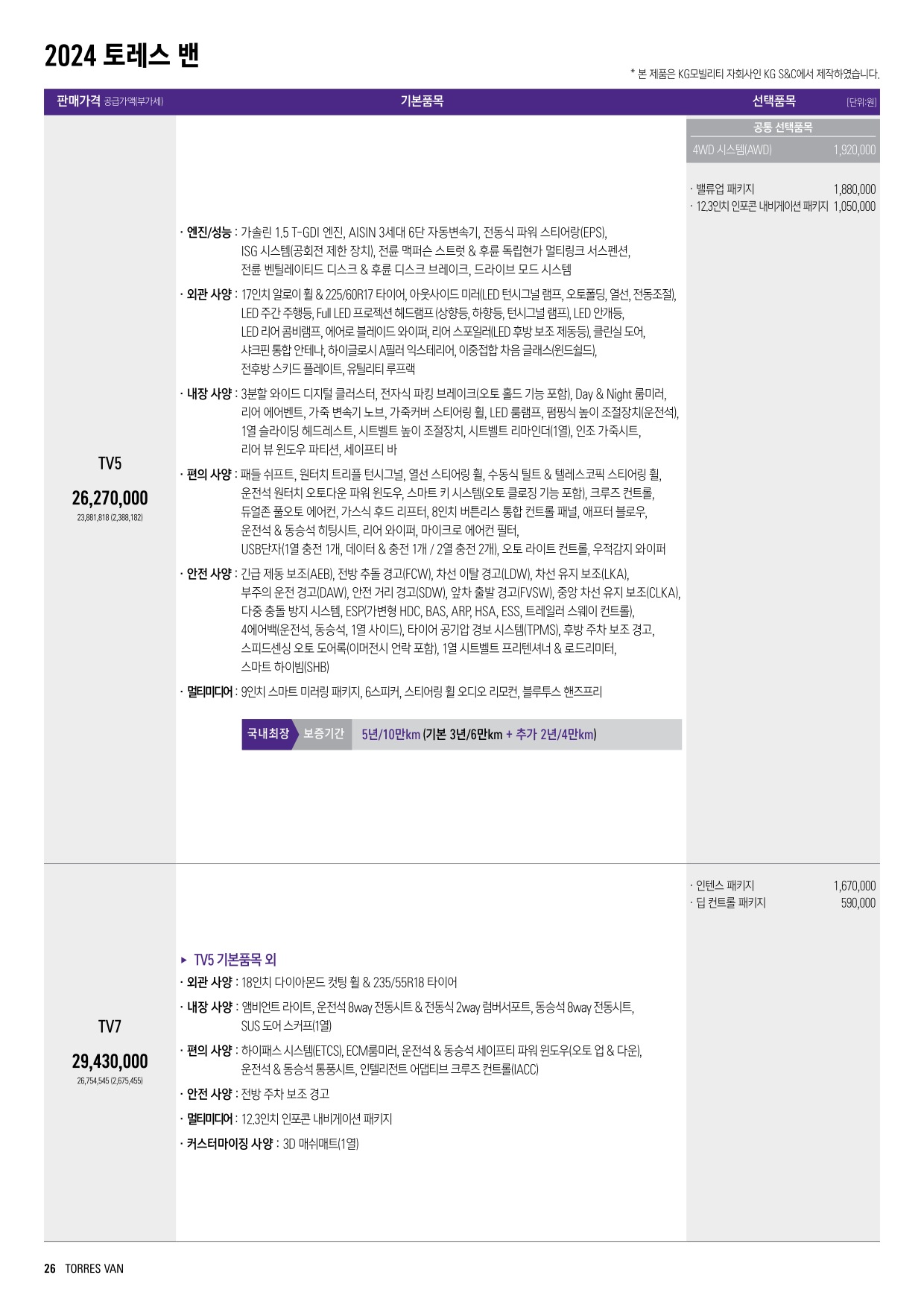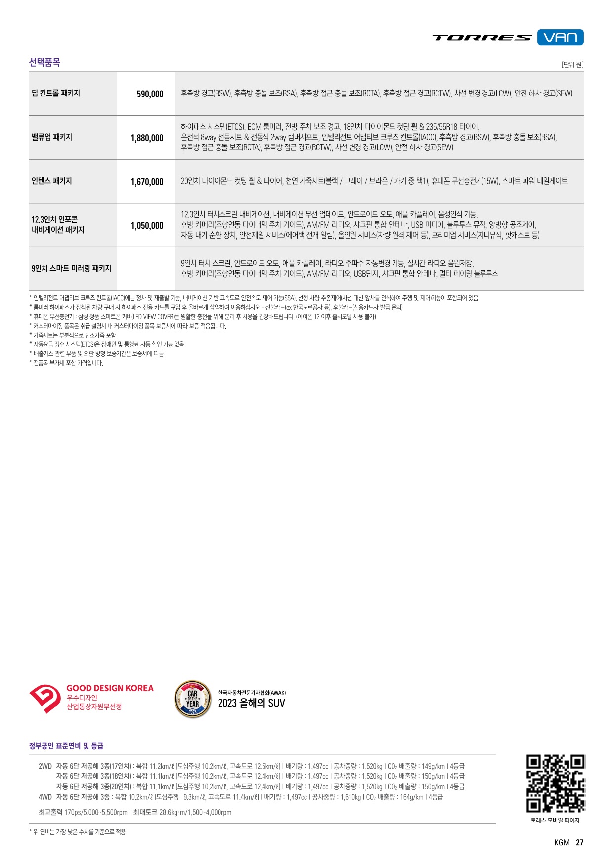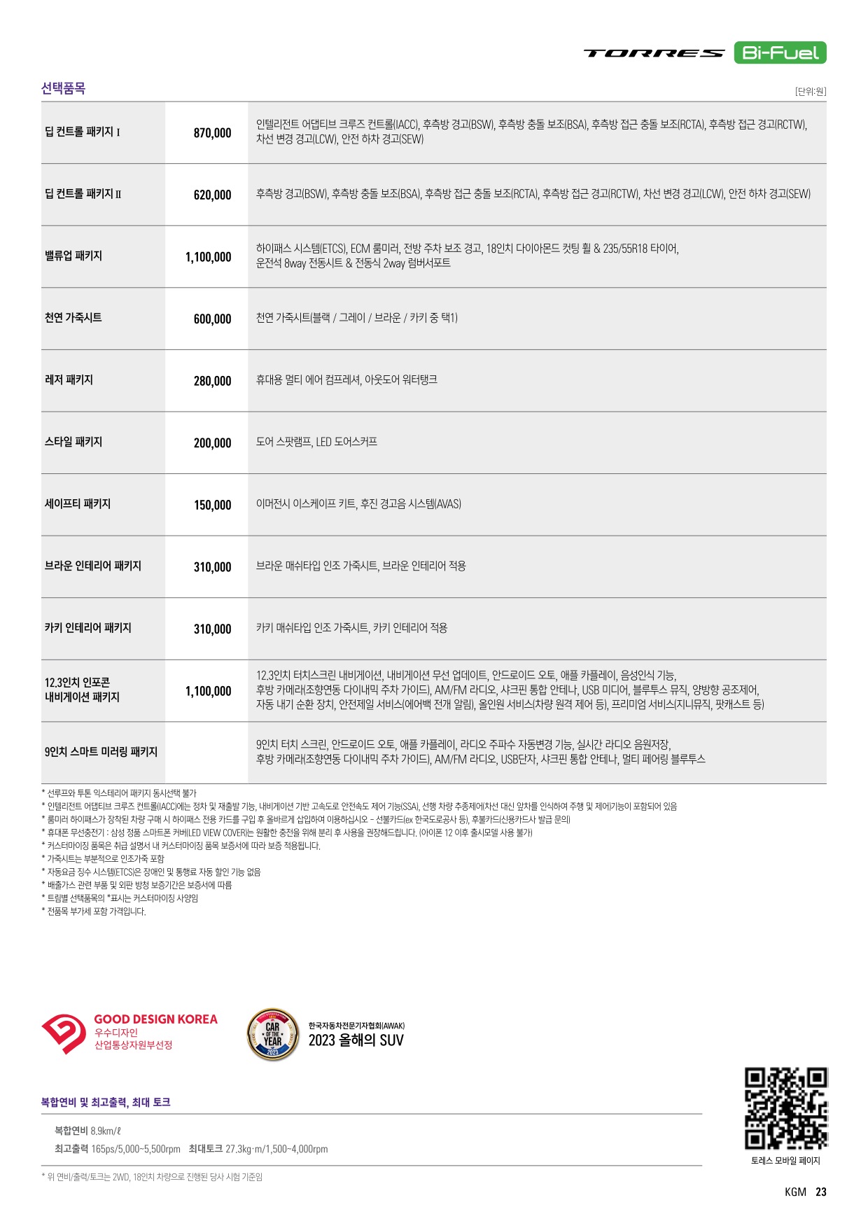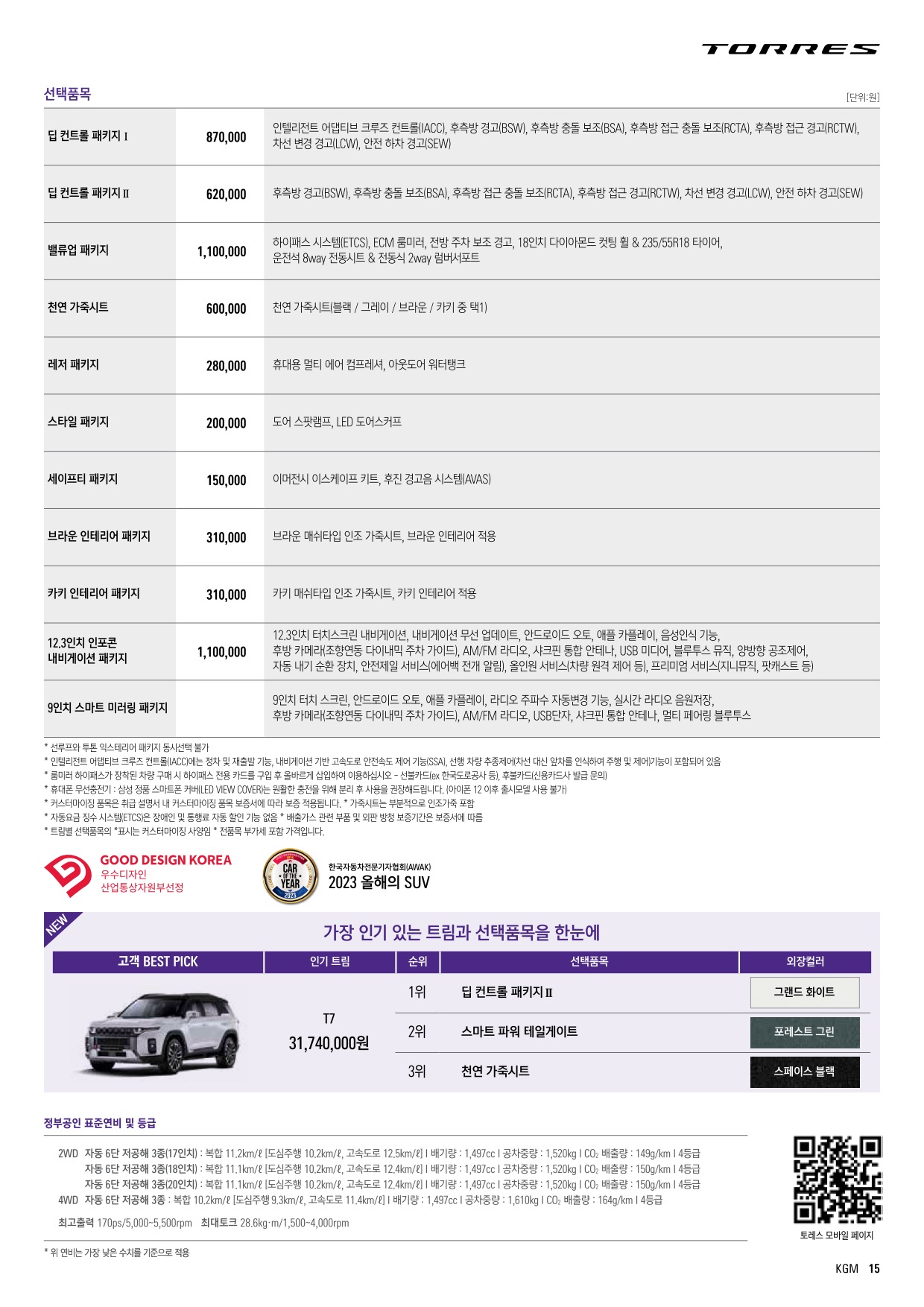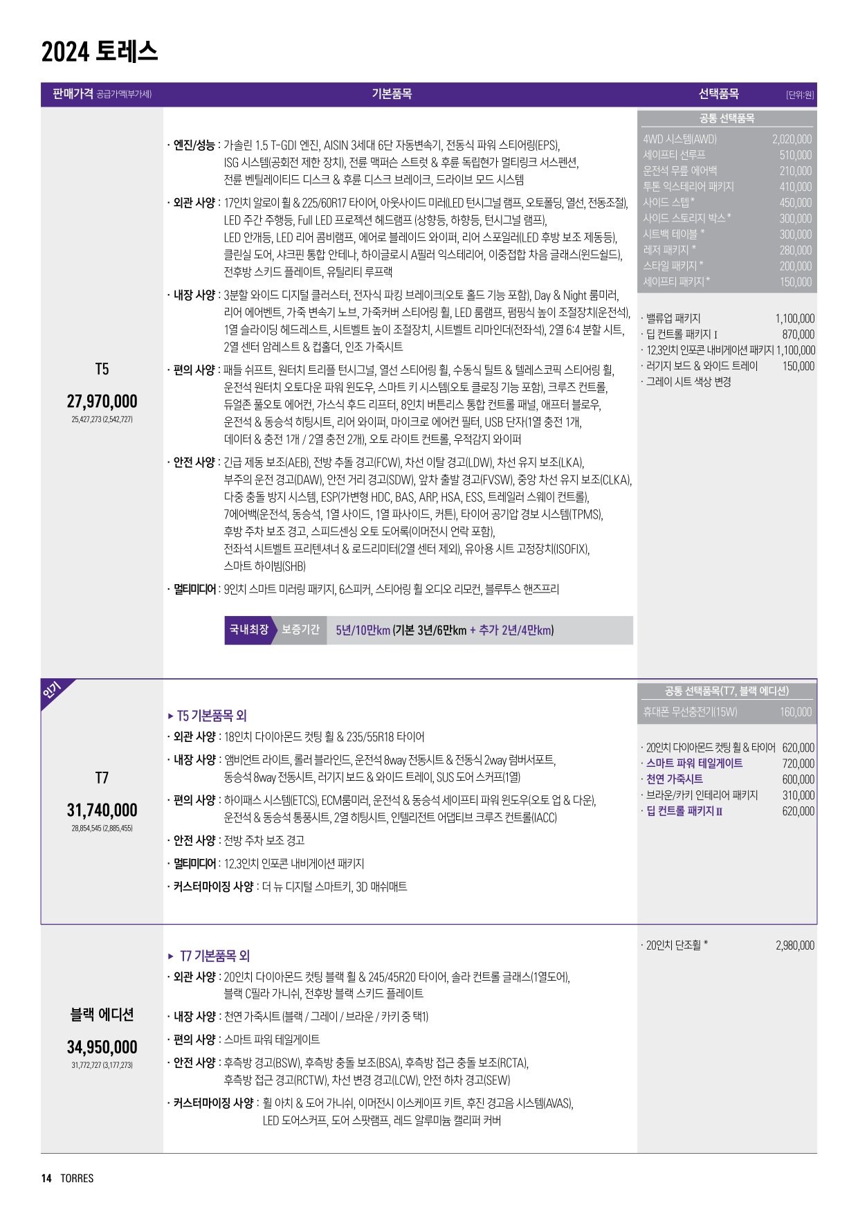 2024년 2월 토레스 신차가격표