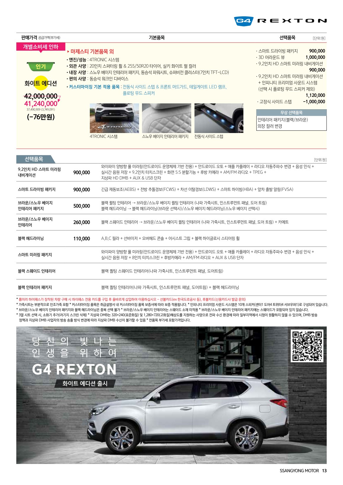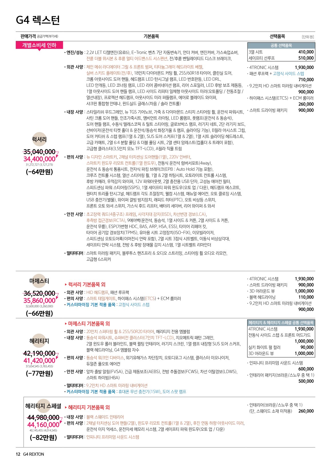 2020년 11월 올뉴렉스턴 신차가격표 (올뉴렉스턴 출시)