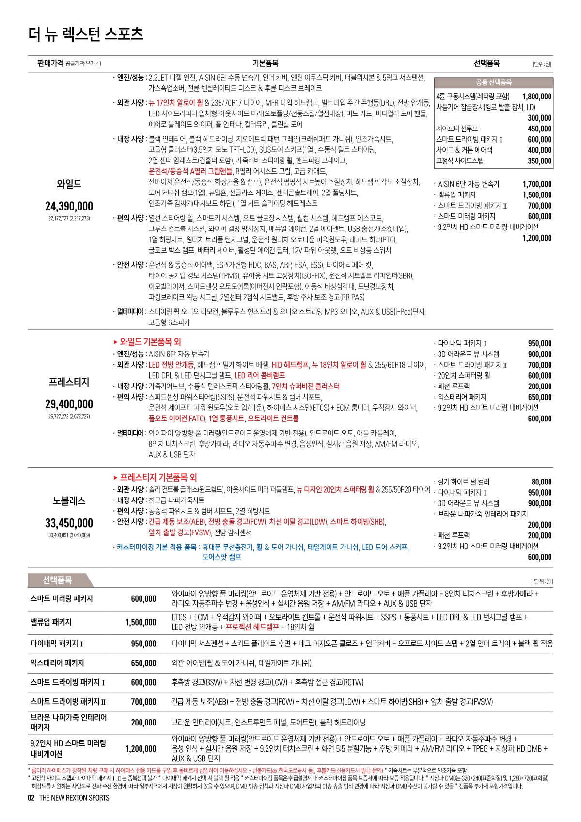 2021년 4월 렉스턴 스포츠 신차가격표 (더 뉴 렉스턴스포츠 출시)