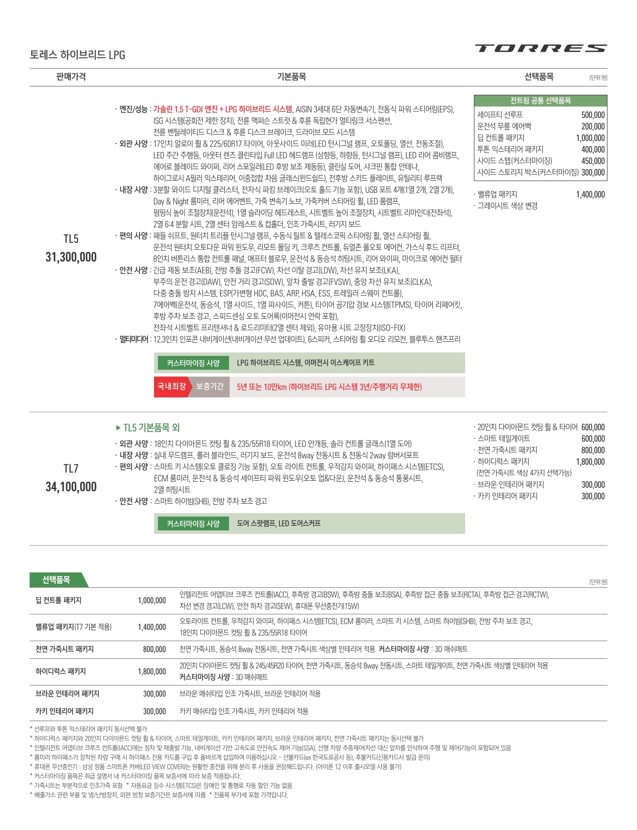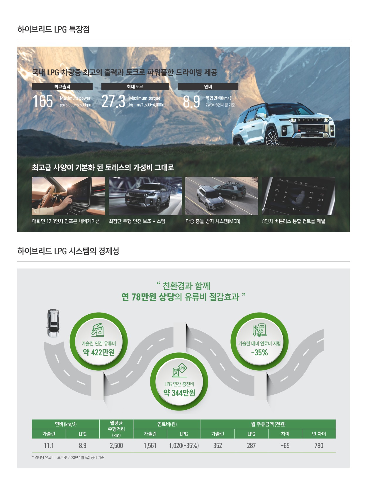 2023년 1월 토레스 신차가격표 (토레스 하이브리드 LPG 출시)