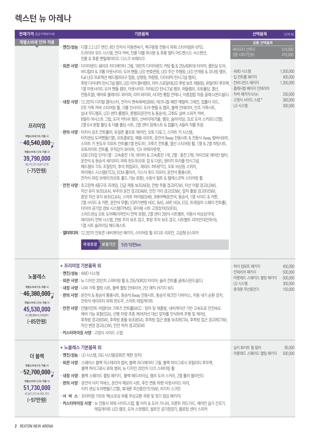 2023년 5월 렉스턴 신차가격표 (렉스턴 뉴아레나 출시)