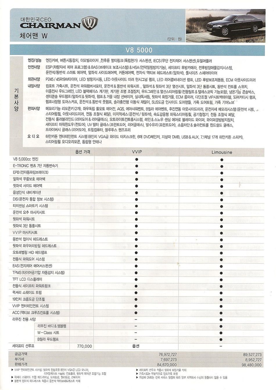 2009년 5월 체어맨W 신차가격표