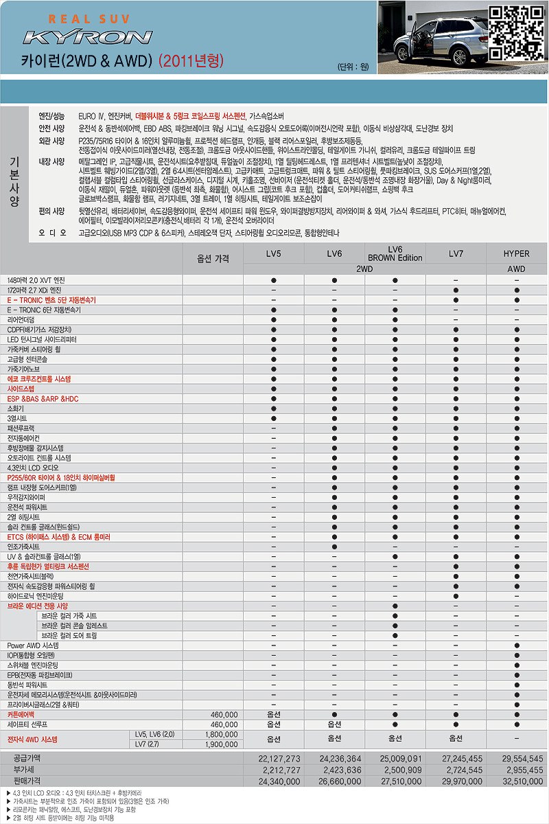 2011년 4월 카이런 신차가격표