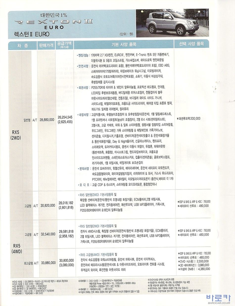 2008년 2월 렉스턴 (렉스턴2유로) 신차가격표