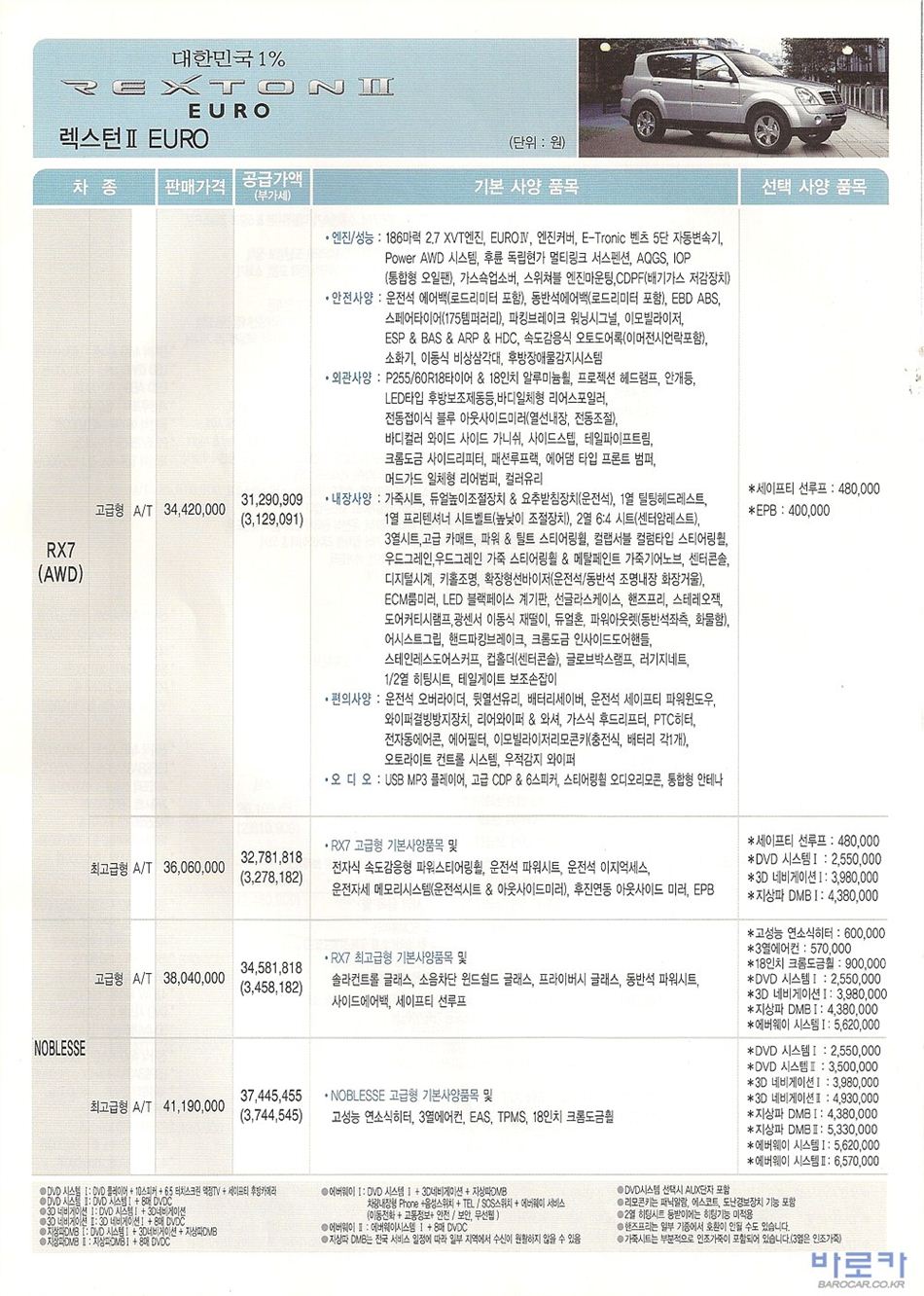 2007년 9월 렉스턴 (렉스턴2) 신차가격표