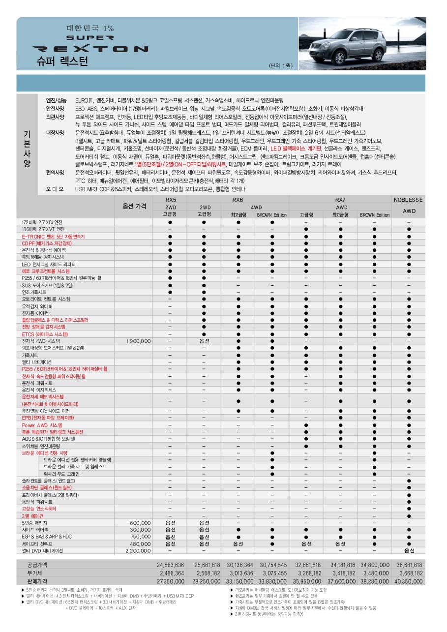 2009년 5월 렉스턴 (슈퍼렉스턴) 신차가격표