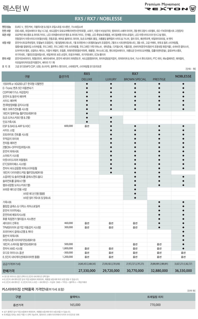 2012년 6월 렉스턴 (렉스턴W) 신차가격표
