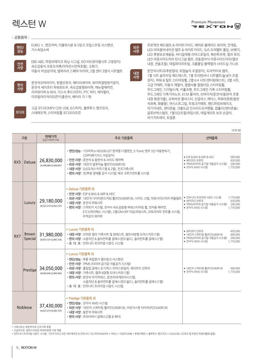 2014년 9월 렉스턴 신차가격표