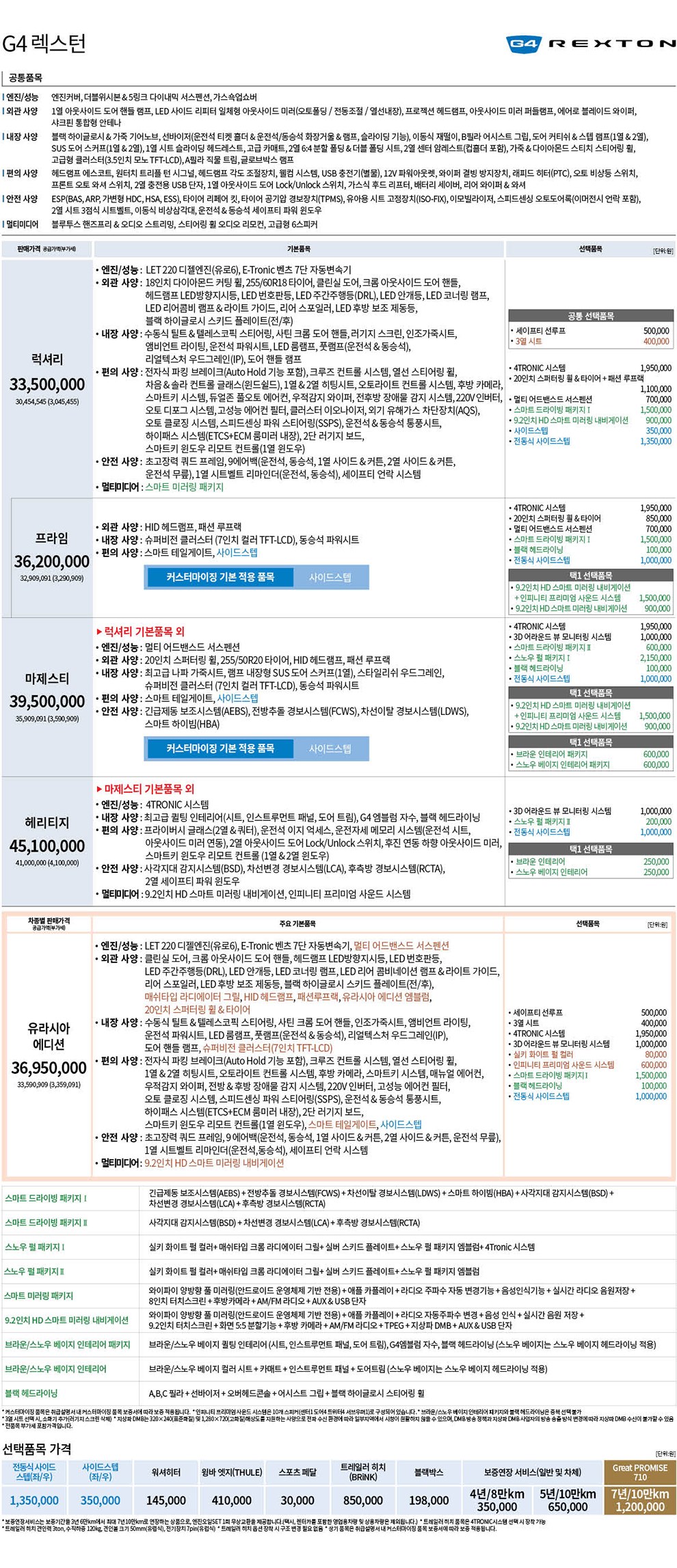 2018년 2월 G4렉스턴 신차가격표