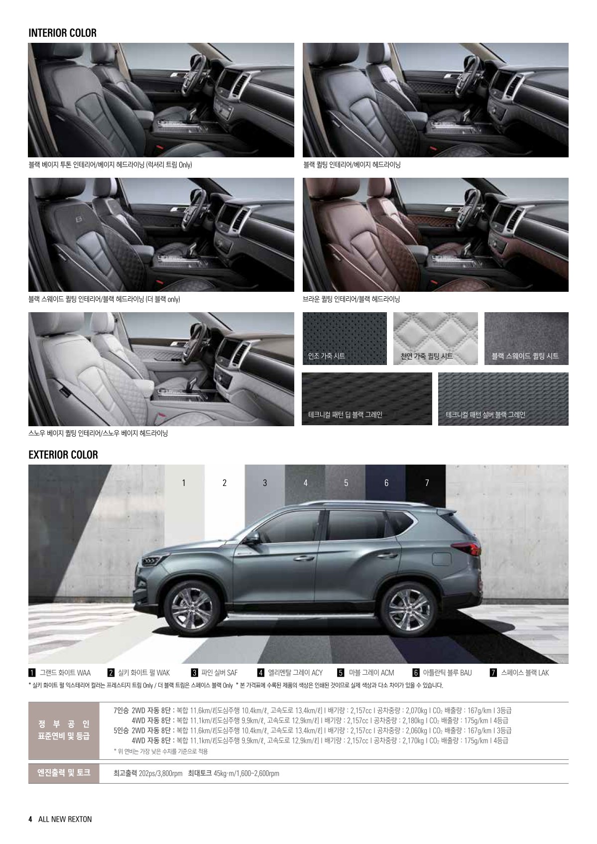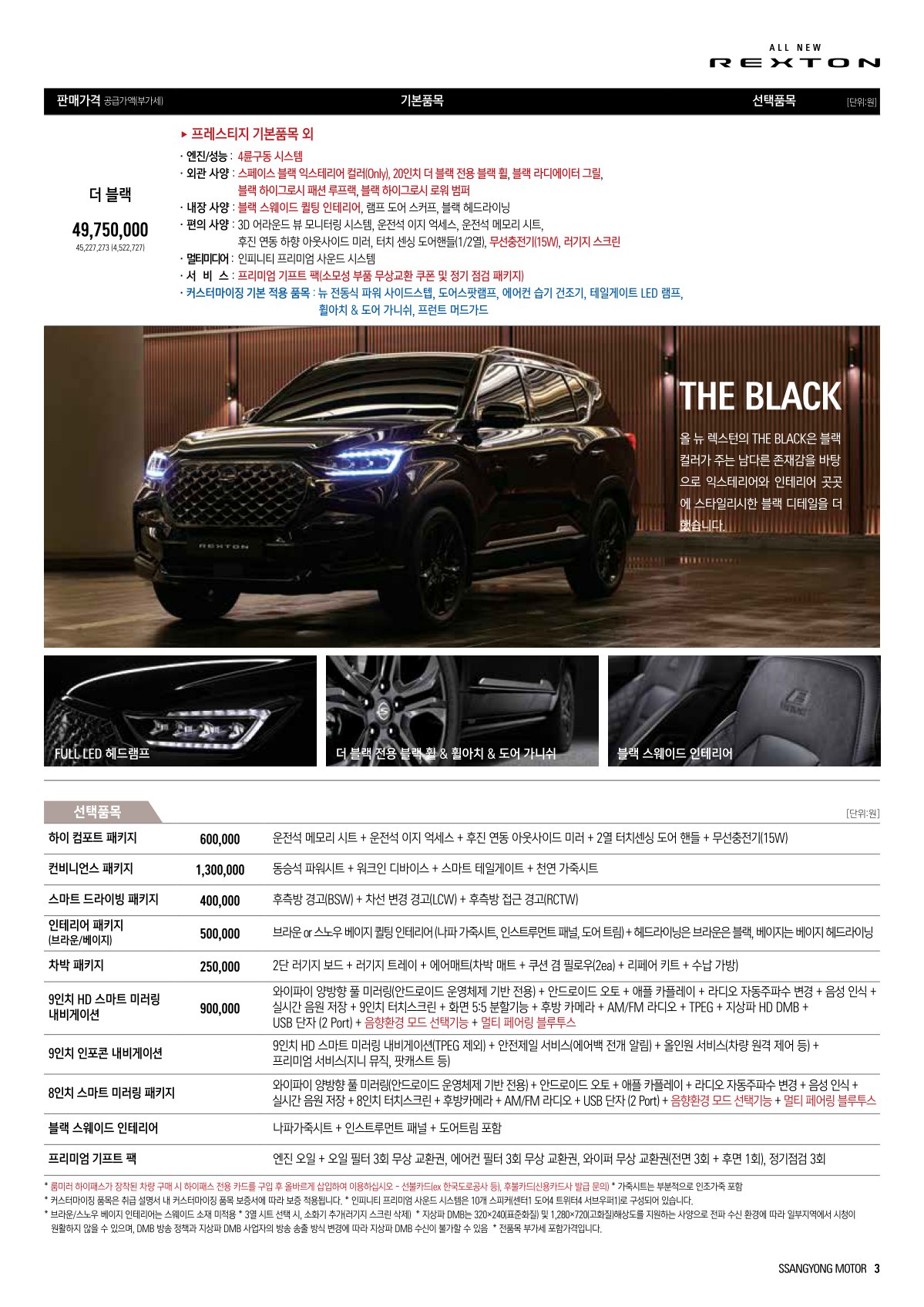 2021년 8월 올뉴렉스턴 신차가격표 (마스터 트림 출시)