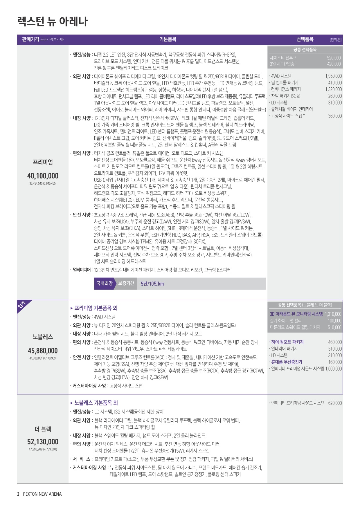 2023년 5월 렉스턴 신차가격표 (렉스턴 뉴아레나 출시)