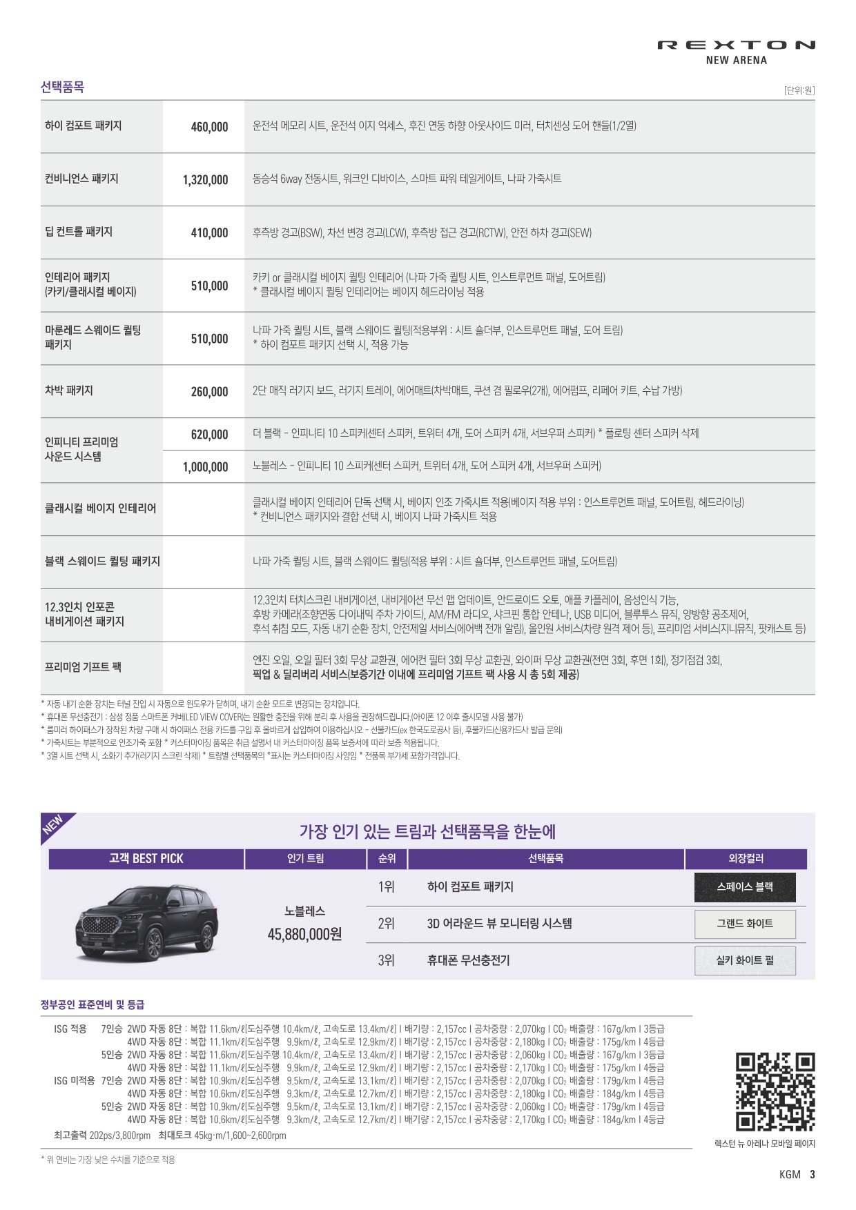 ※ 본 가격표의 모든 저작권은 해당 차량 제조사에 있습2024년 3월 렉스턴 신차가격표니다.