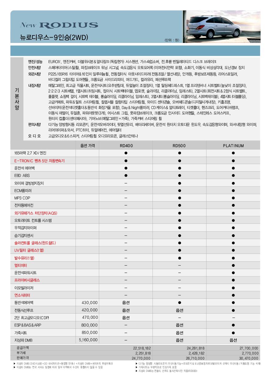 2009년 5월 로디우스 신차가격표