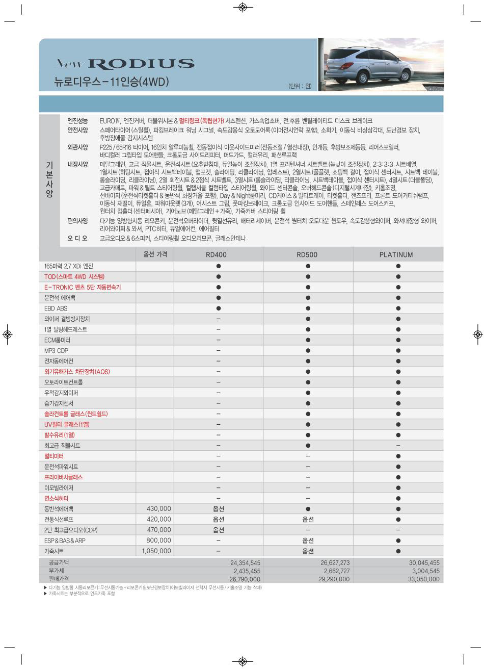 2011년 4월 로디우스 신차가격표