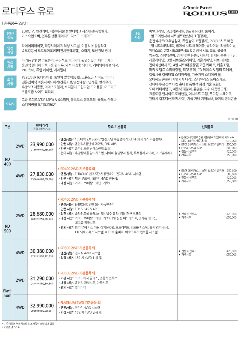 ※ 본 가격표의 모든 저작권은 해당 차량 제조사에 있습니다.