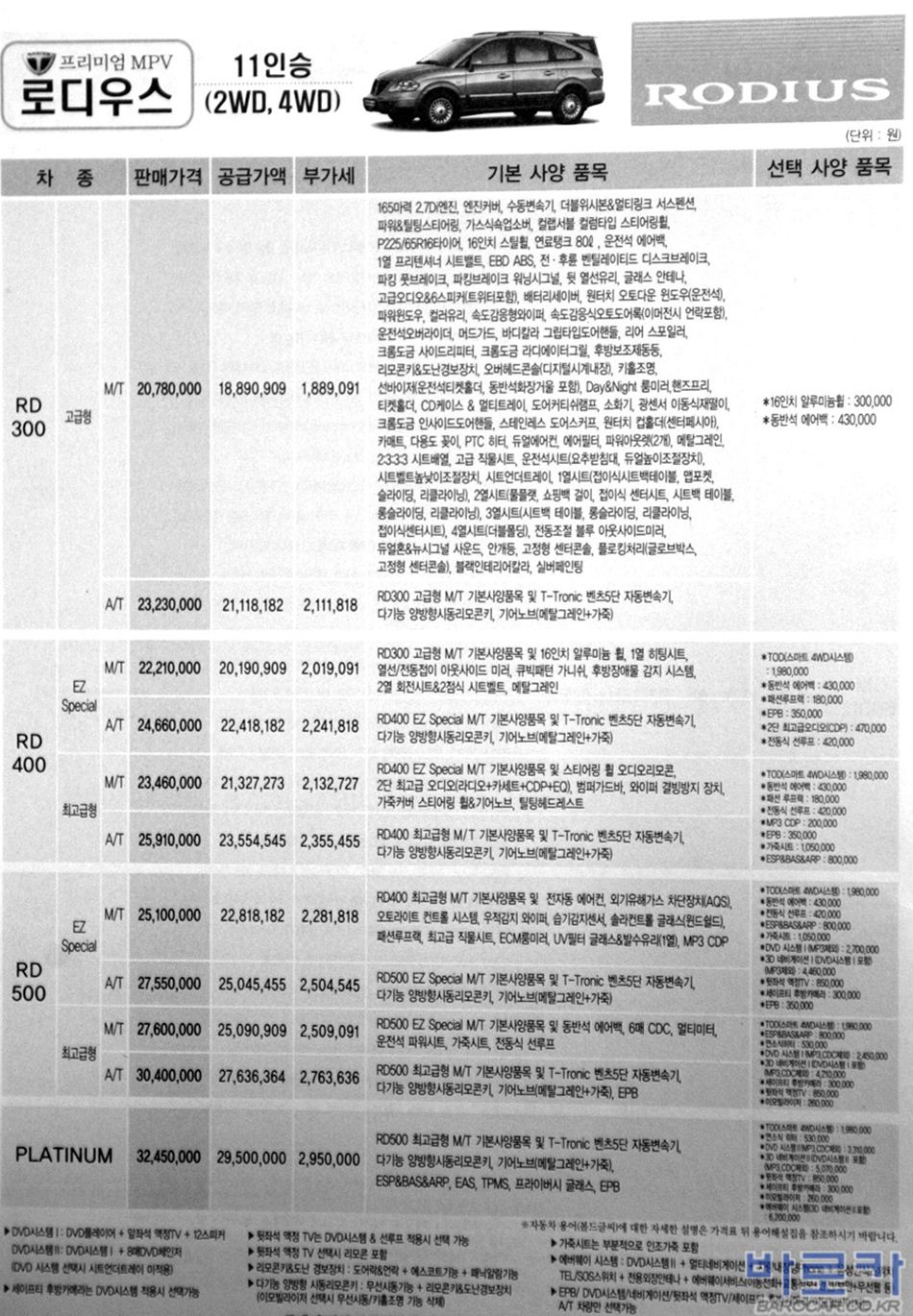 2005년 10월 로디우스 신차가격표