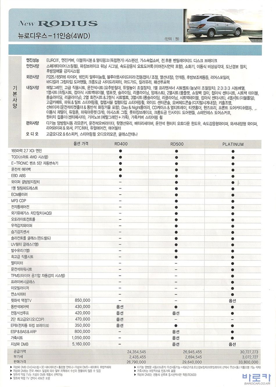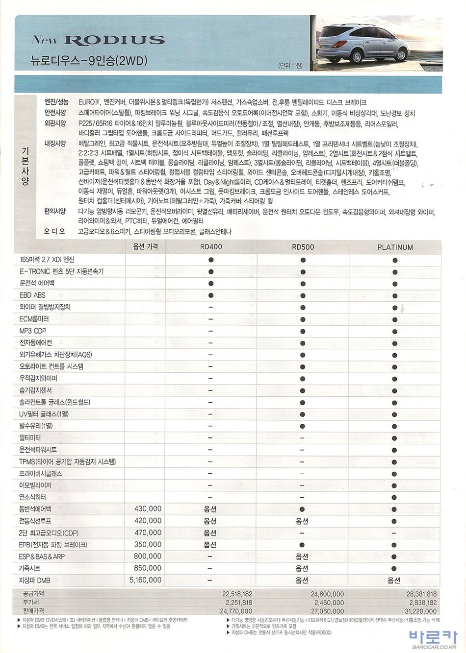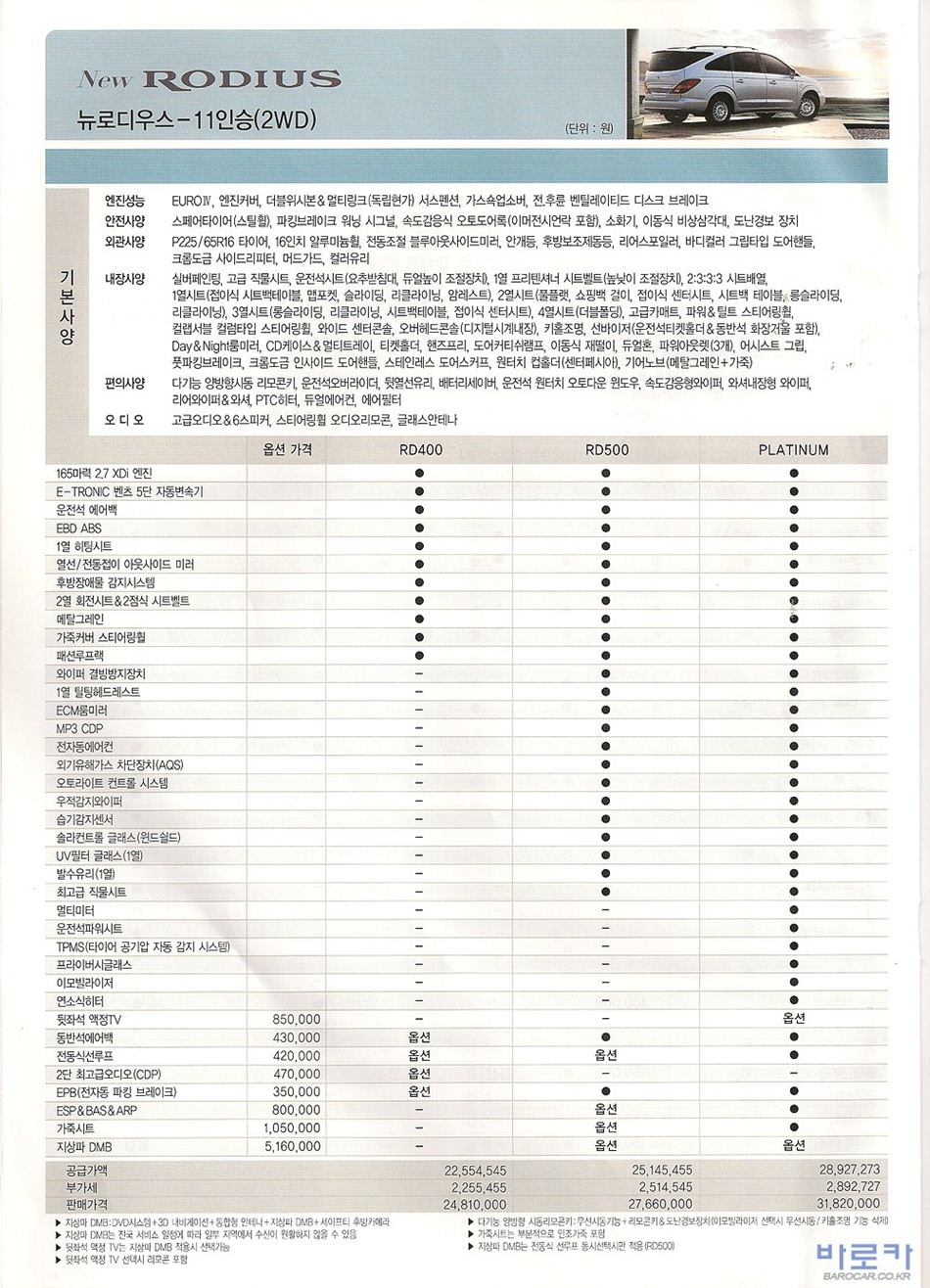 2009년 5월 로디우스 신차가격표